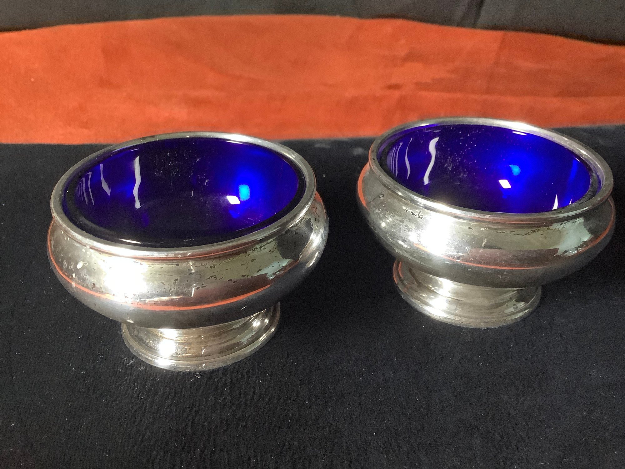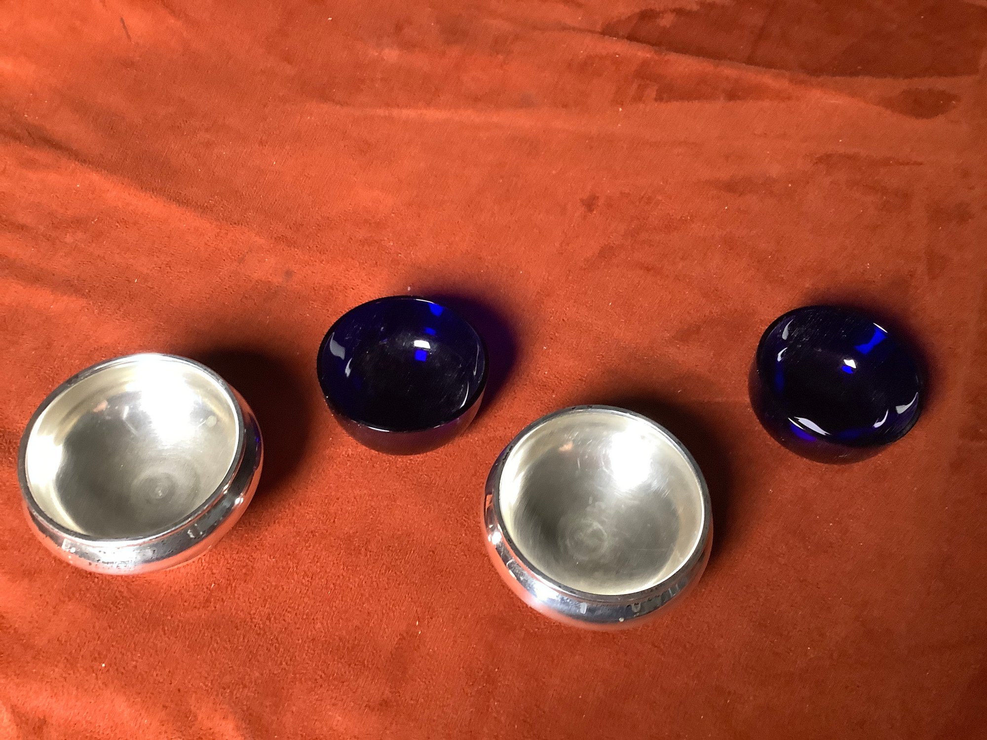 Quantity:2 Salt Cellars with Cobalt Blue Inserts.