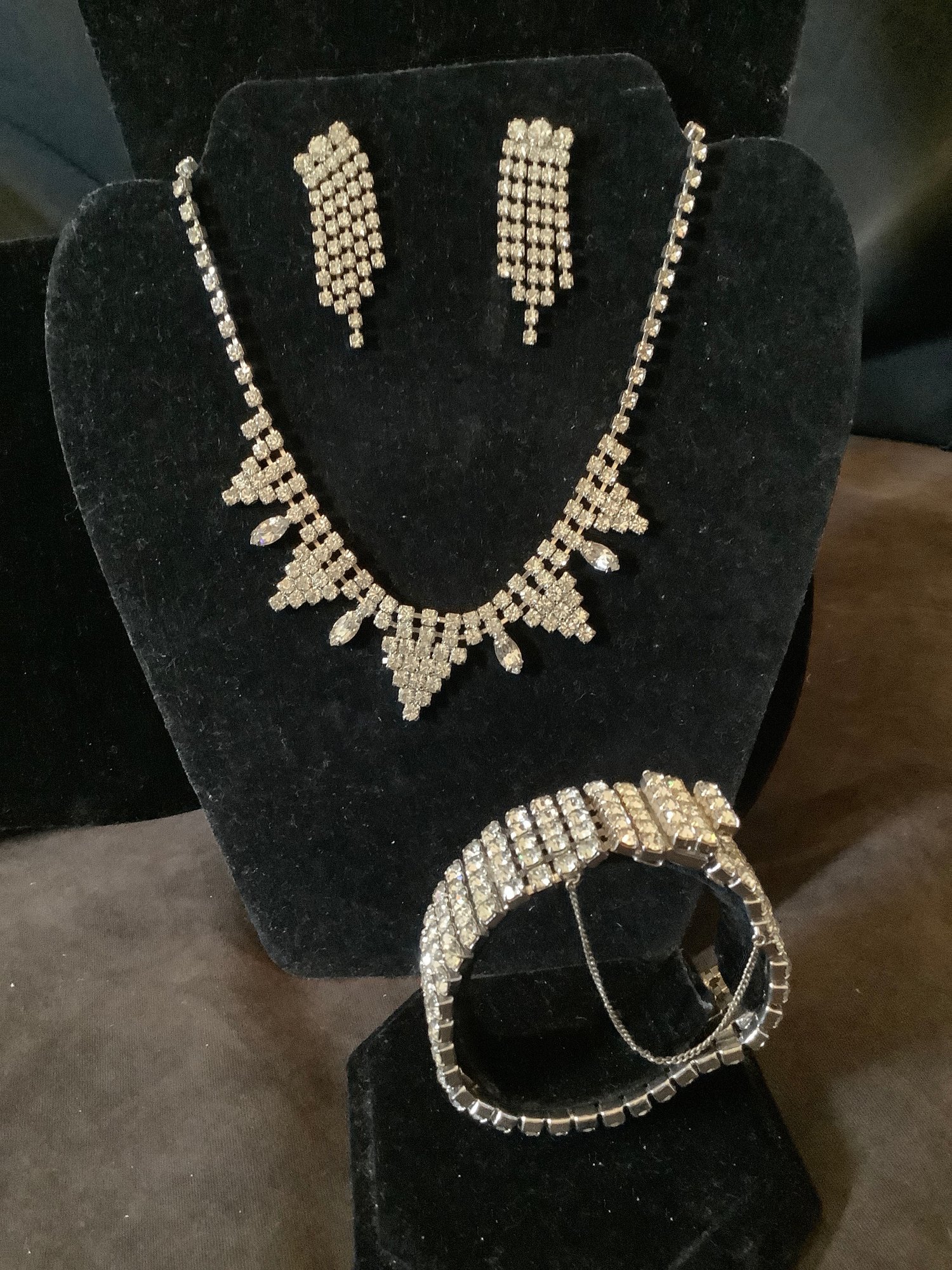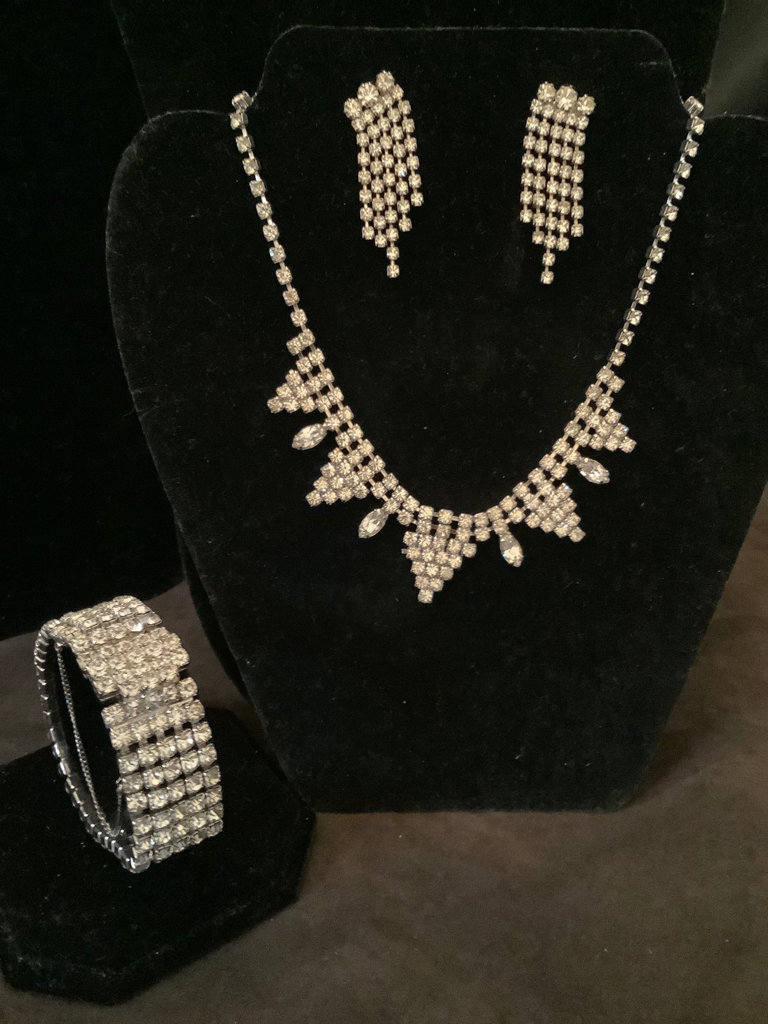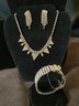 An enhancing neckline costume necklace with triangular points,
