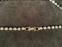 A 5 row bracelet with a safety chain,
