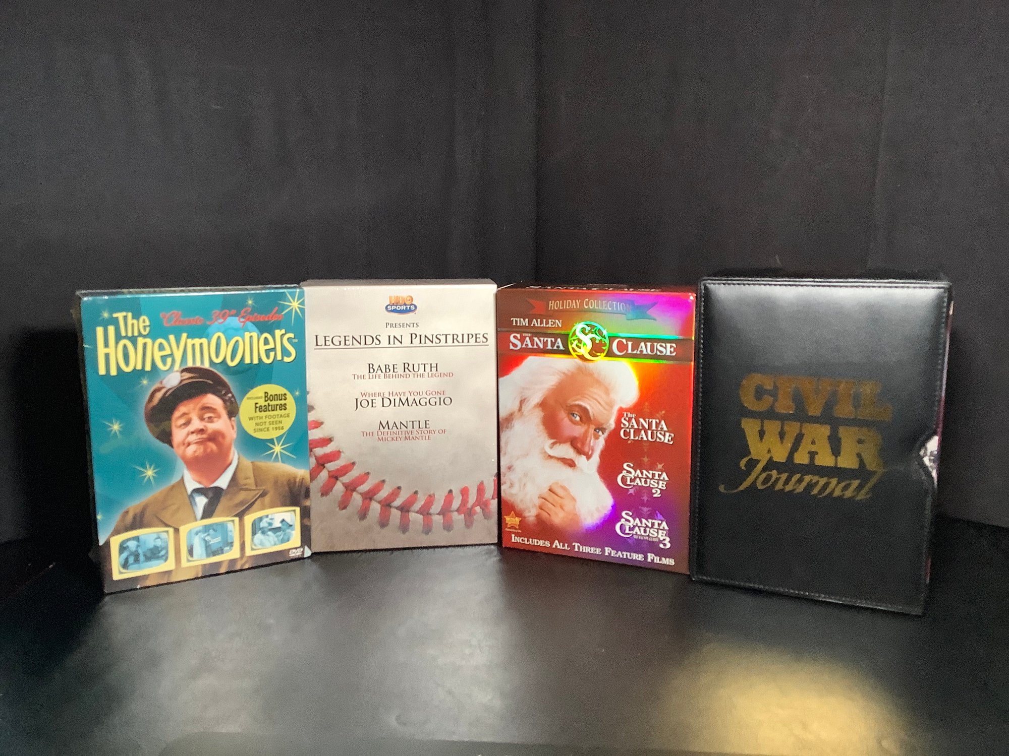 4 new DVD series. Includes Civil War Journal, Disney The Santa Clause, HBO Legends IN Pinstripes and The Honeymooners. New never opened DVD’s. Photos are part of the description.