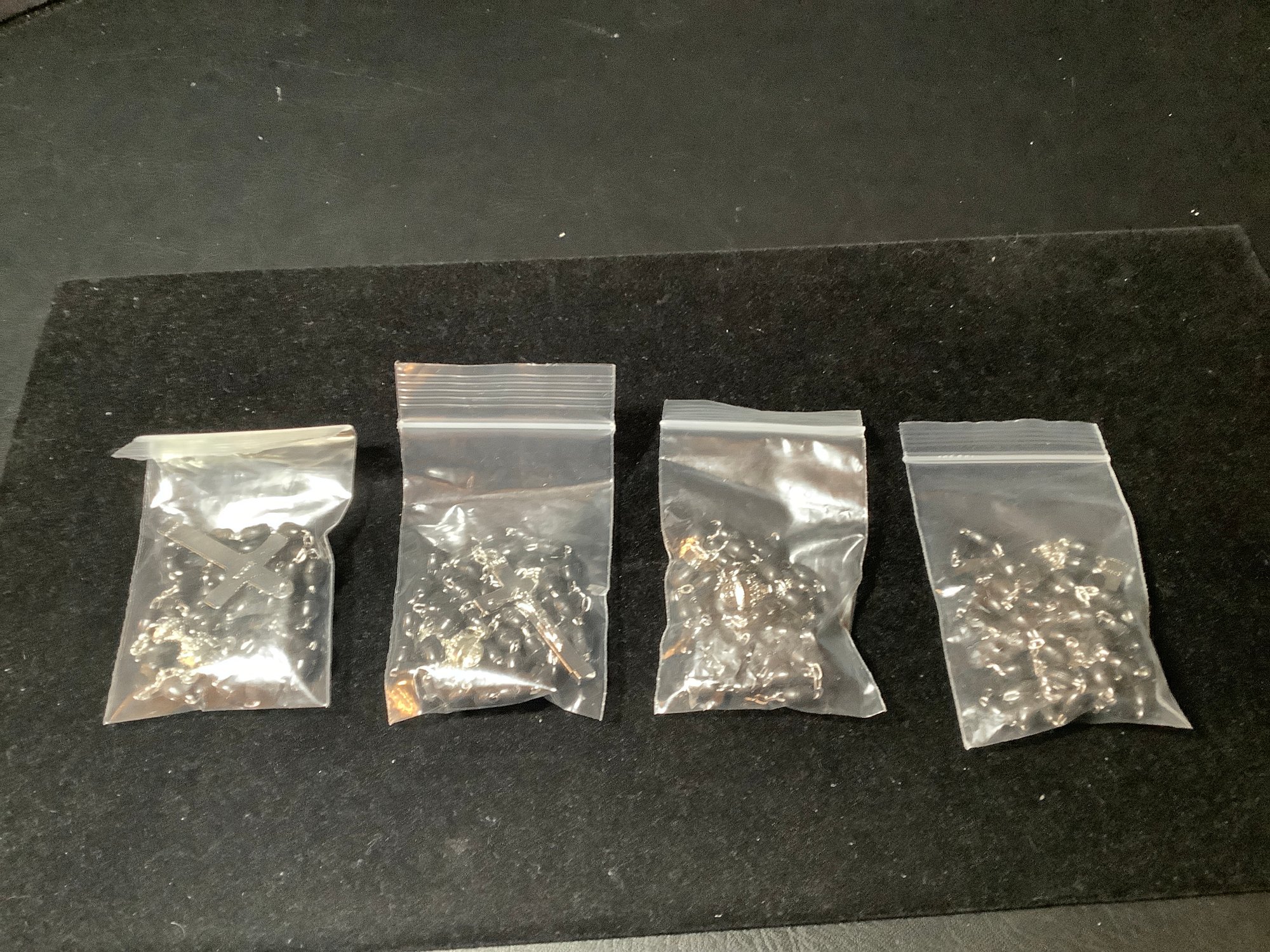 4 New Holy Rosaries in bags. Black beads. Photos are part of the description.