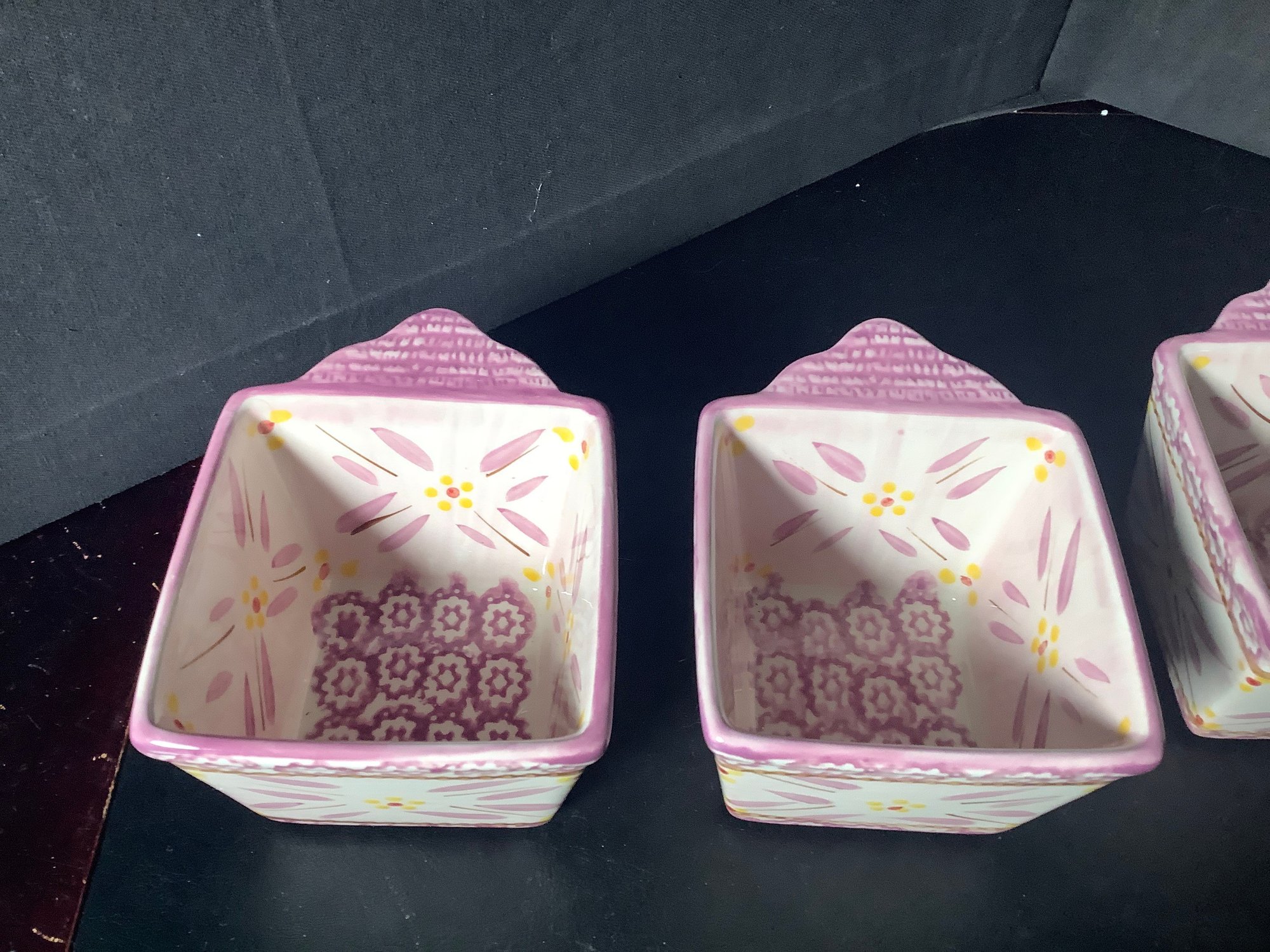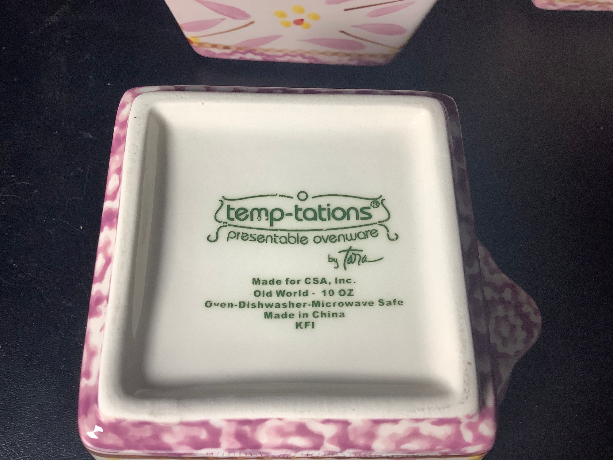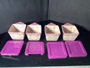 Temp-tations Lilac Old World square ramekins . Comes with plastic lids.Size 10 ounce. Preowned, but looks like it was never used . Photos are part of the description. NO SHIPPING!!!