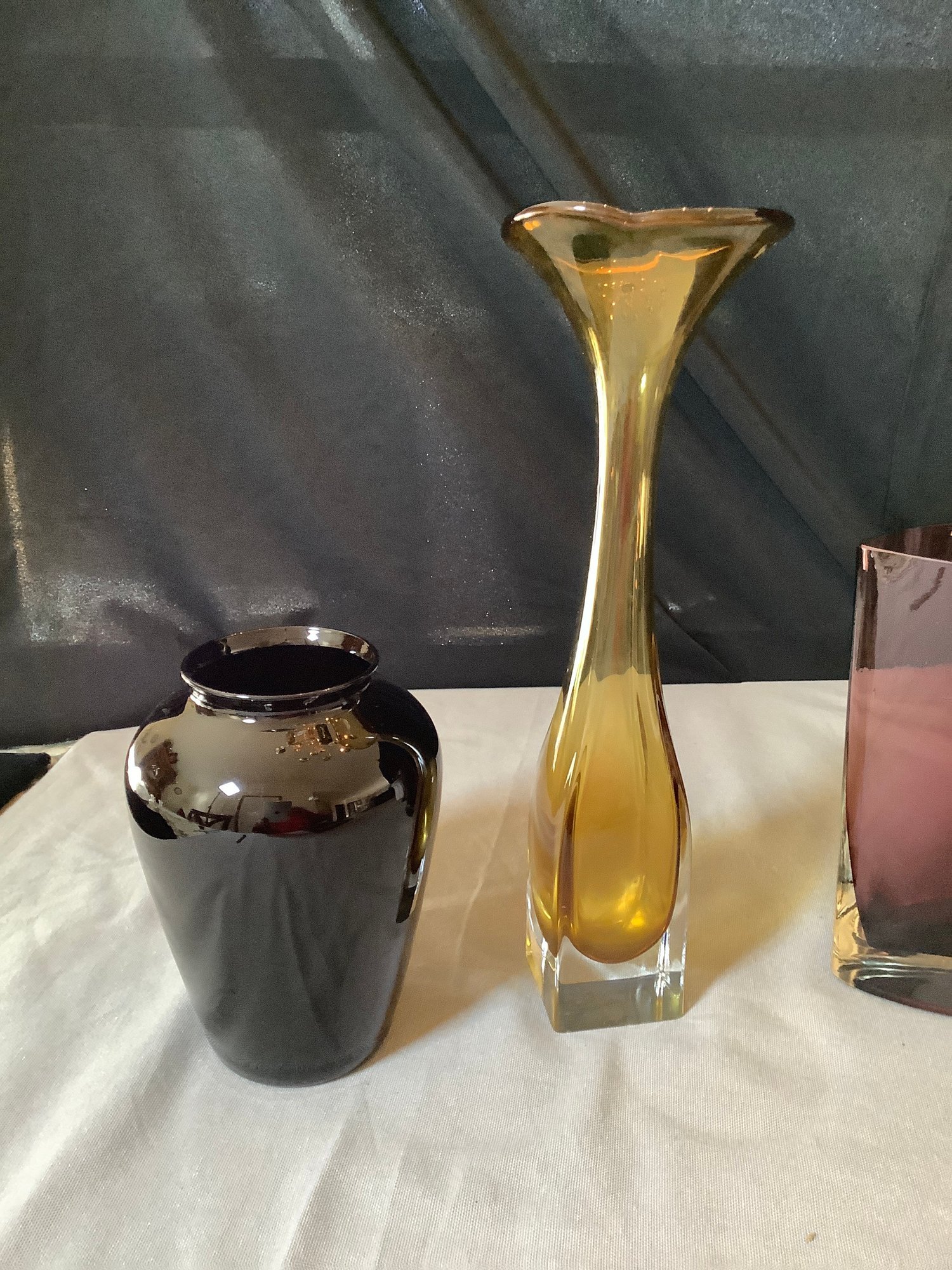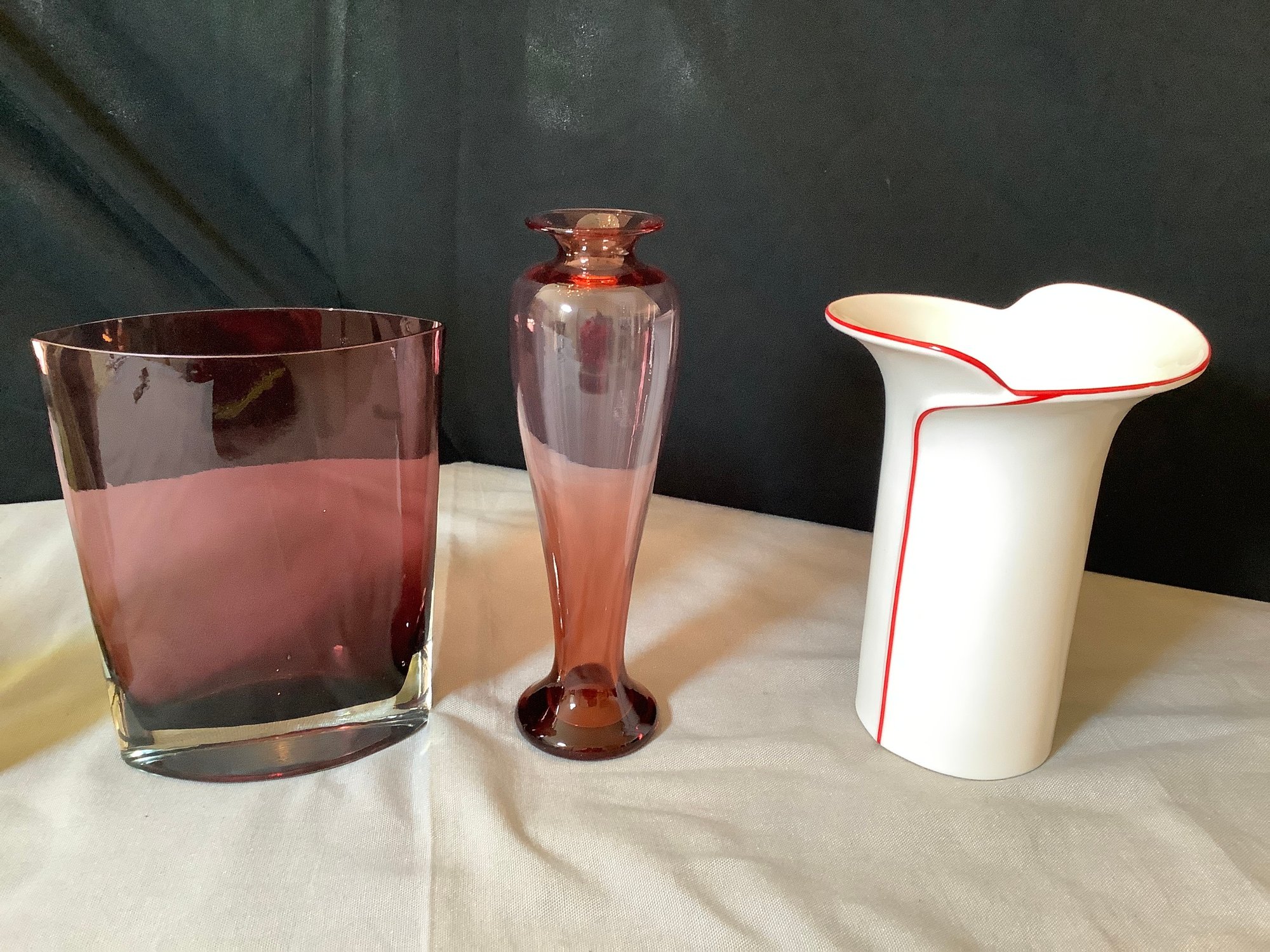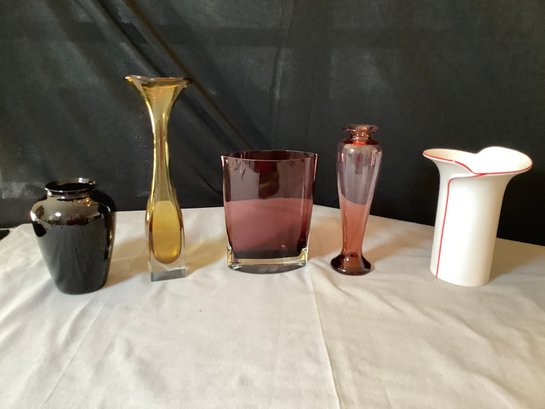 5 beautiful assorted vases. The tallest is 12-3/4” tall and the shortest 7”. Photos are part of the description. Preowned. NO SHIPPING.