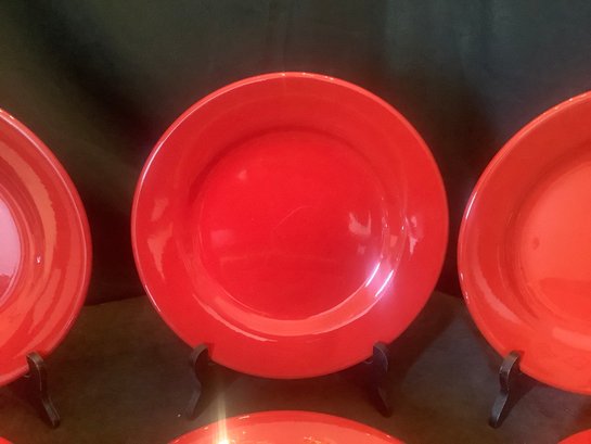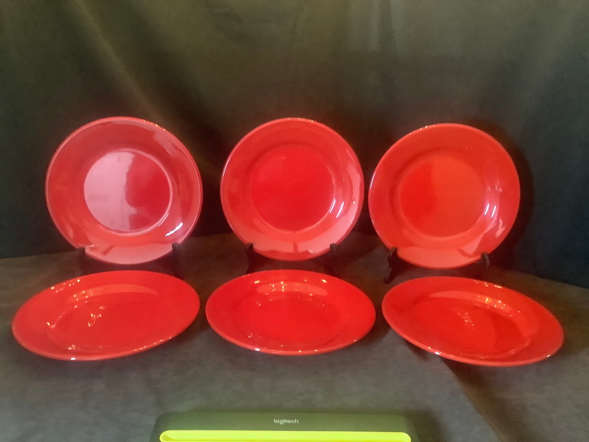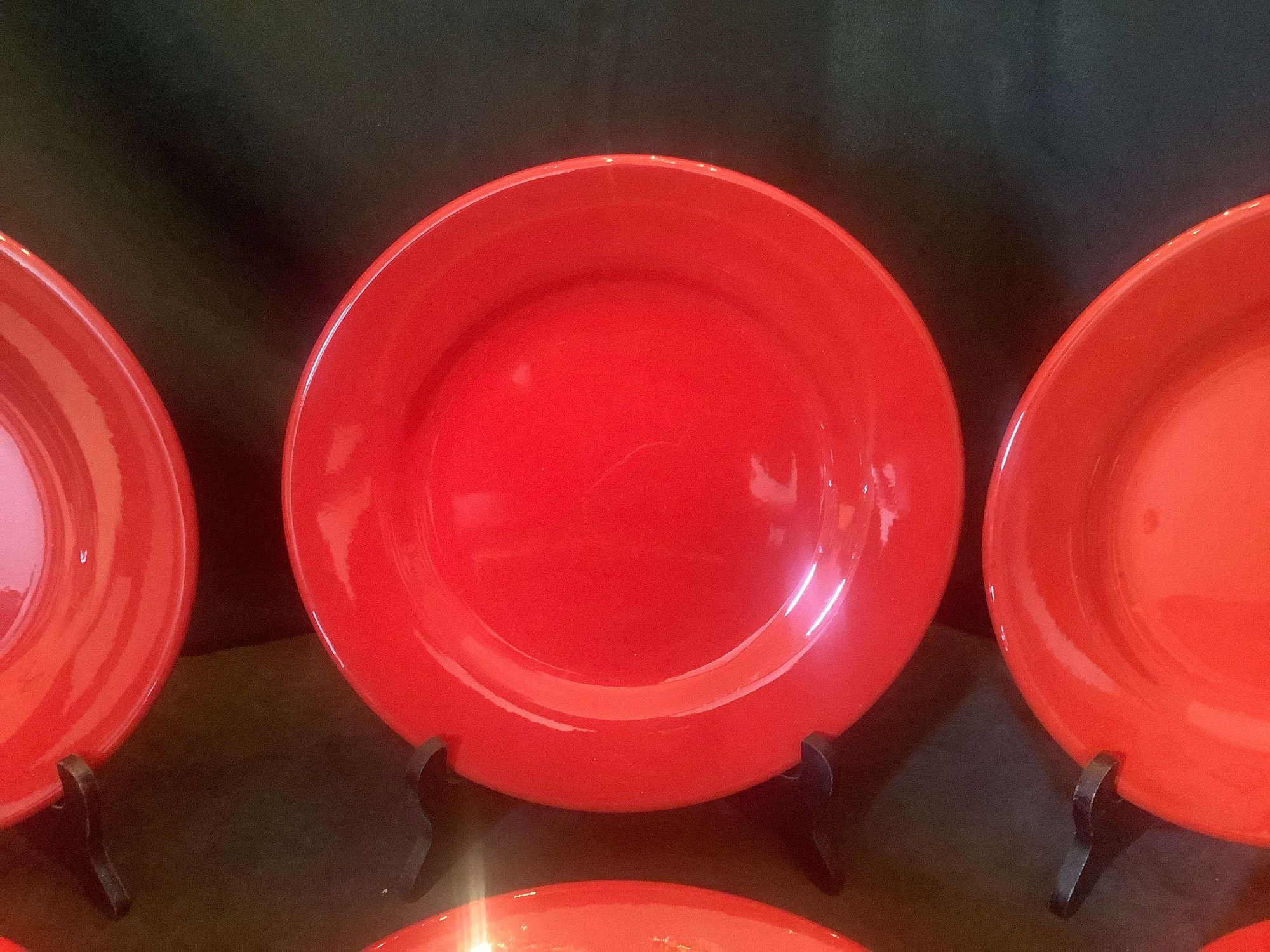 6 red Waechtersbach dinner plates. Made in Germany. Size 10-1/2”. Photos are part of the description. Preowned. NO SHIPPING.