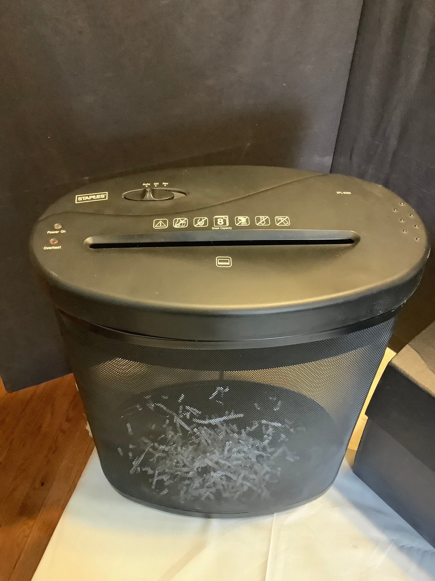 Paper shredder and bill organizer. Shredder did shred a double paper. Photos are part of the description. Preowned. NO SHIPPING!!!!!!