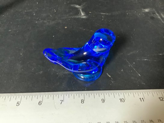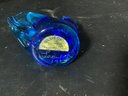 3 art glass birds. Includes blue bird of happiness signed, Clear glass bird and red bird marked Fenton. Photos are part of the description. Preowned