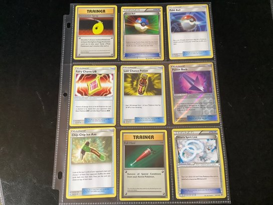 3 Groups of assorted Pokemon cards.