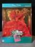 Barbie is dressed in a Beautiful Red Ball Gown . The dress has lots of tulle with gold stars .and ruffles. She is wearing earring, necklace and a hair ornament.