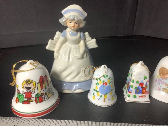 7 piece bell collection. Includes a nurse, Snoopy, Precious Moments and more. Photos are part of the description. Pre-owned. NO SHIPPING!!!