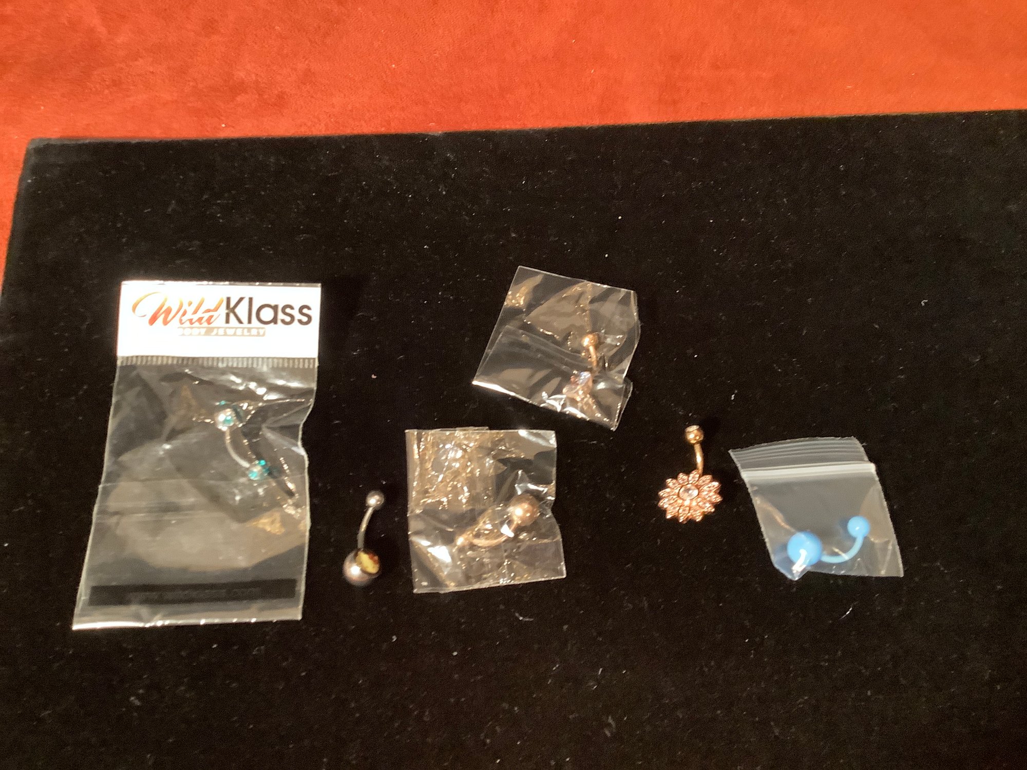 6 pieces of Belly Button Rings. They look clean. 4 pieces still in packages.