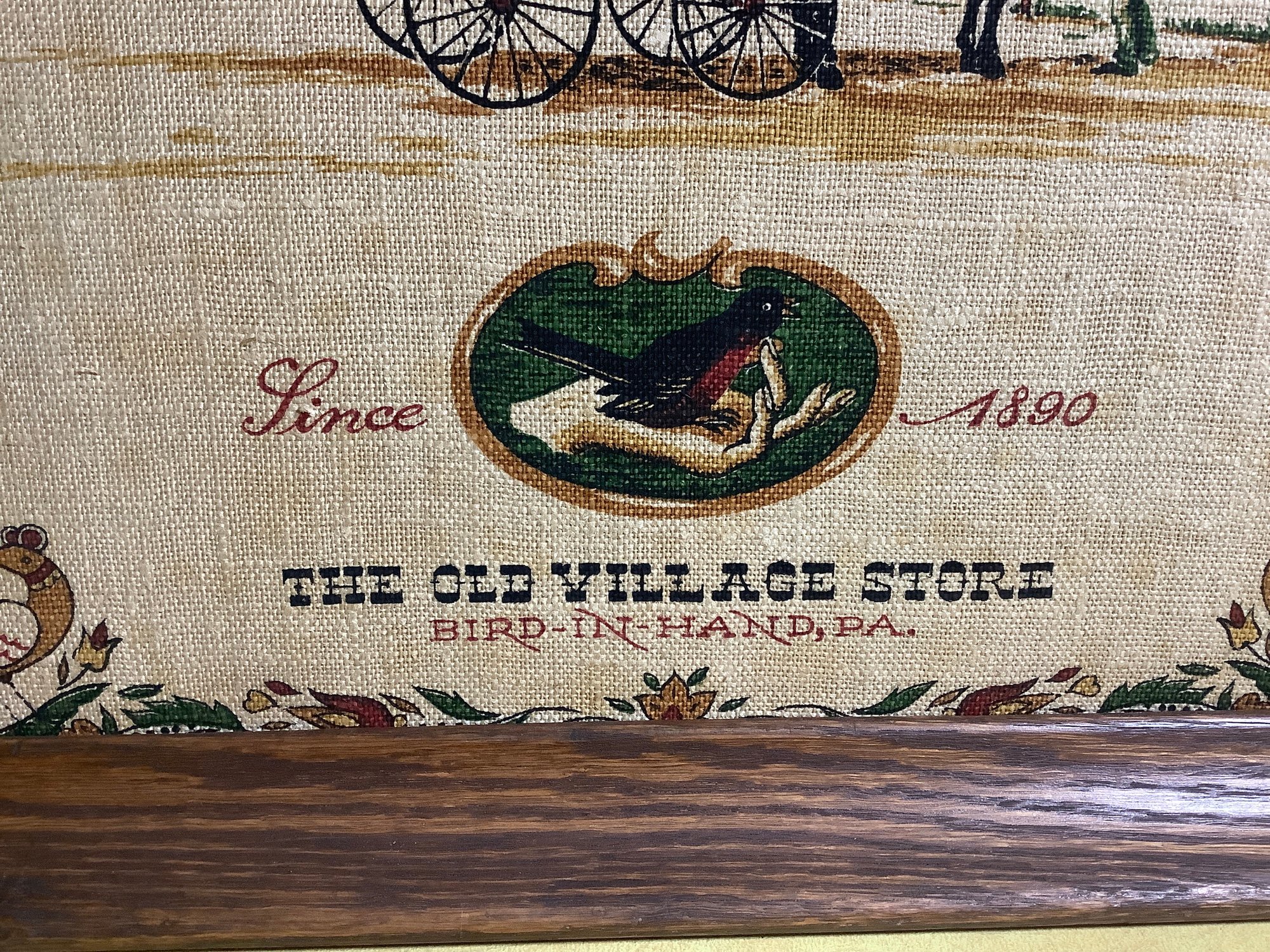 Bird In Hand, PA framed linen. The Old Village Store, Since 1890. Preowned. Photos are part of the description NO SHIPPING!!!