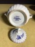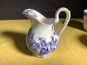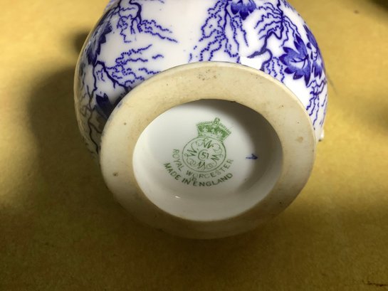 2.) Royal Worcester Creamer in blue and white and enhanced with gold rims.