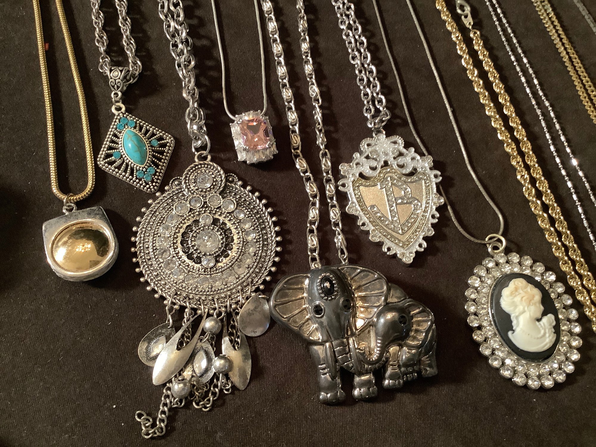 We have Bold silver tone and gold tone pendants of assorted sizes.