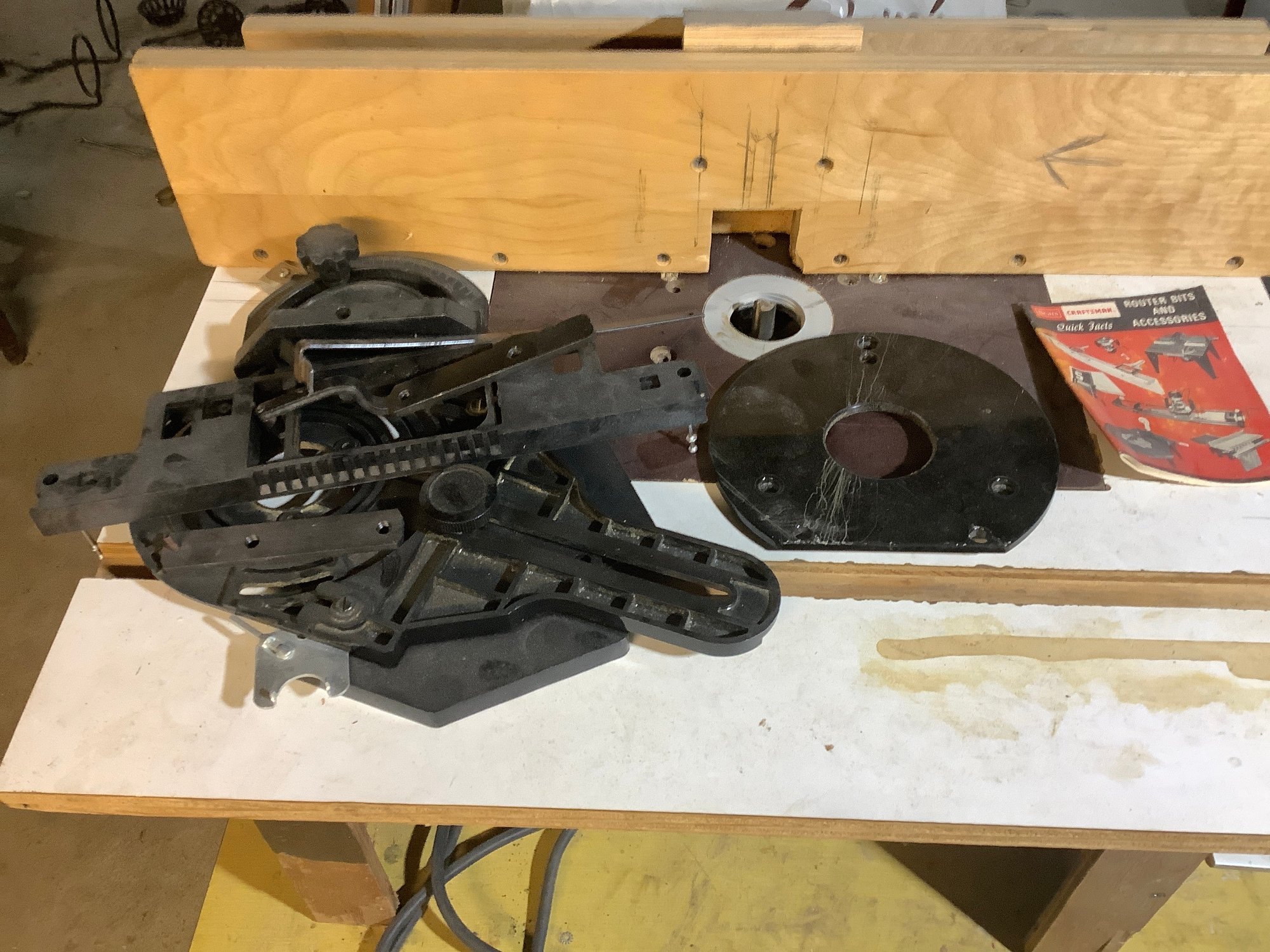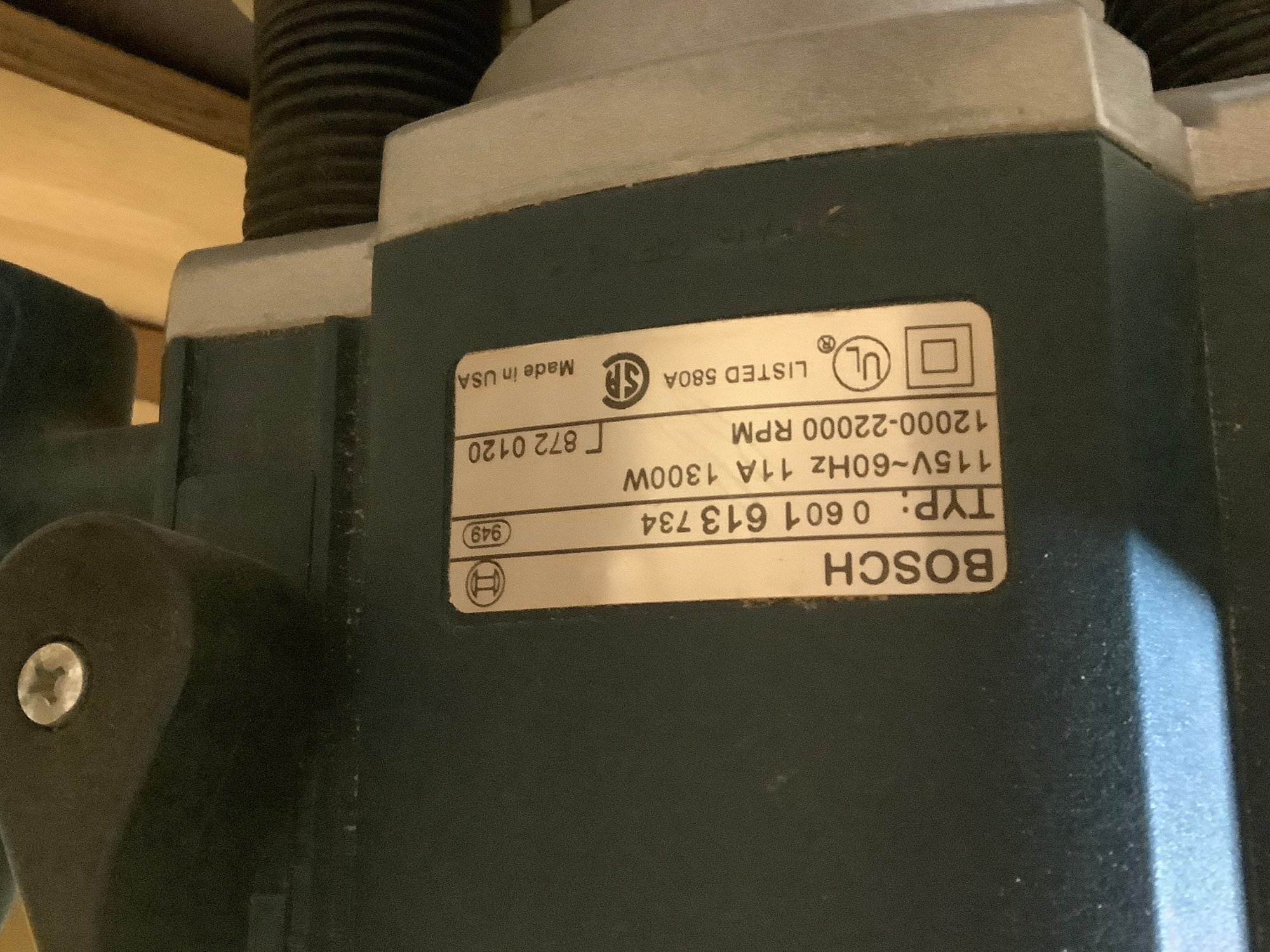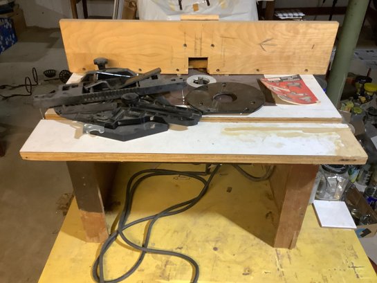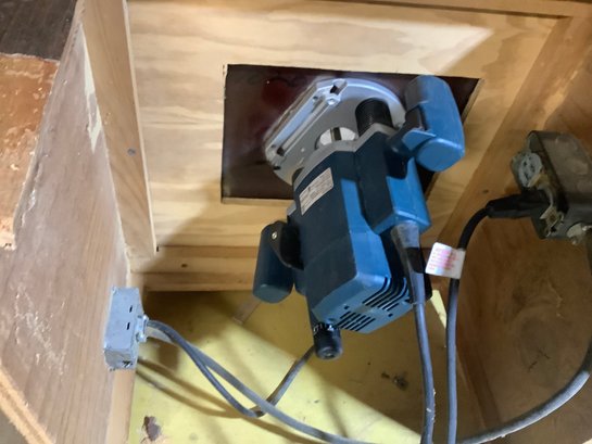 Bosch Router mounted on a home made table. Photos are part of the description. Preowned. NO SHIPPING. Untested.