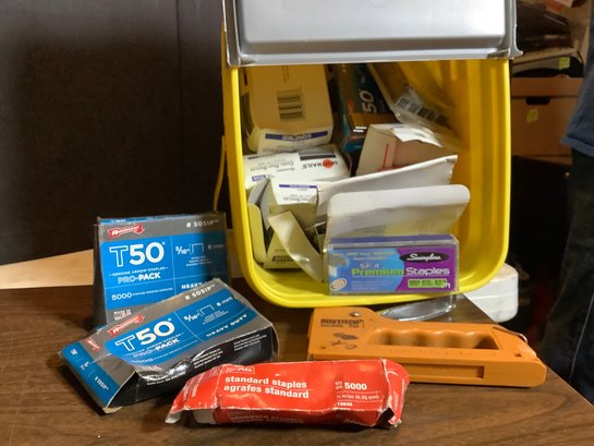 Staples are all assorted, types and sizes.