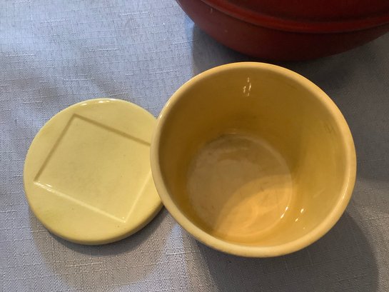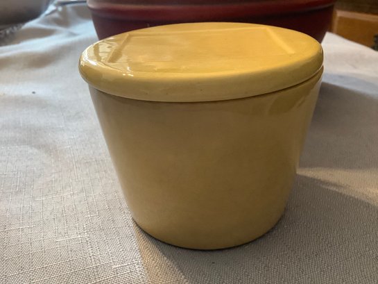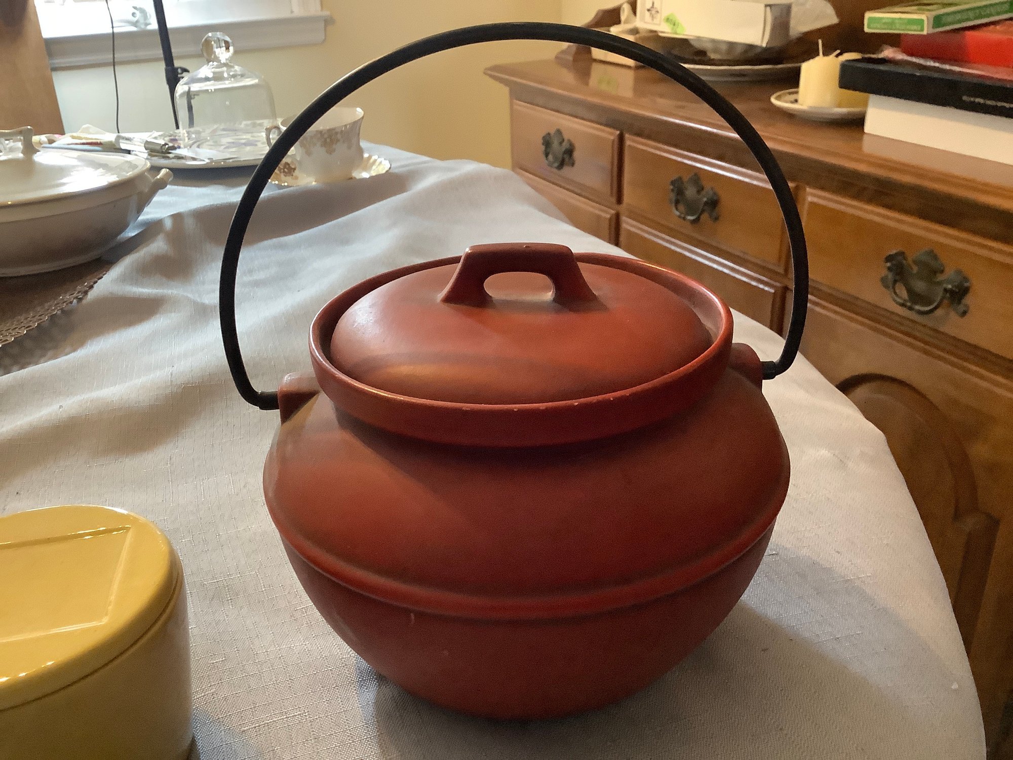 This collectible piece is handled and Lidded. We call it a bean pot.