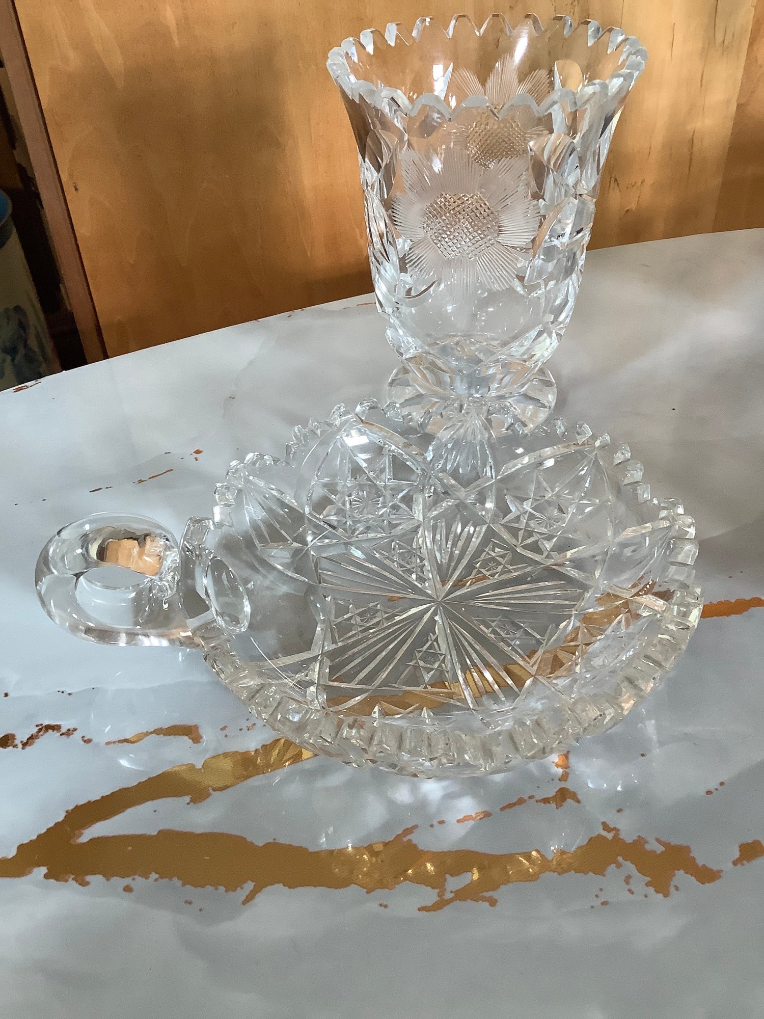 Chrystal cut Sunflower design Vase with sawtooth rim