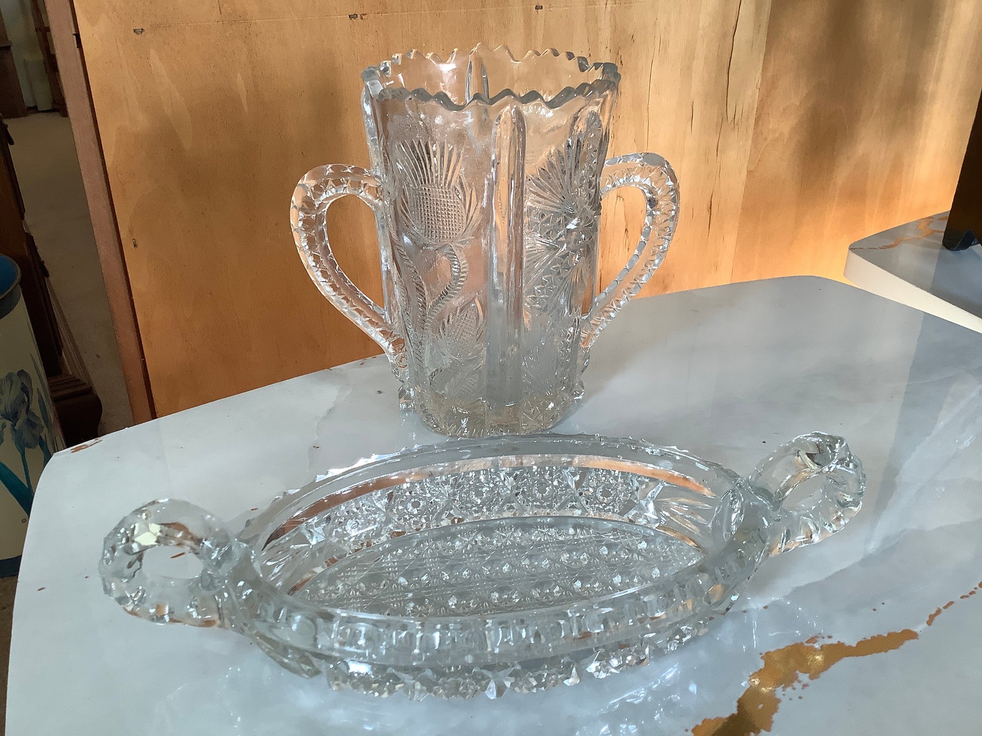 A handled sawtooth cut vase,