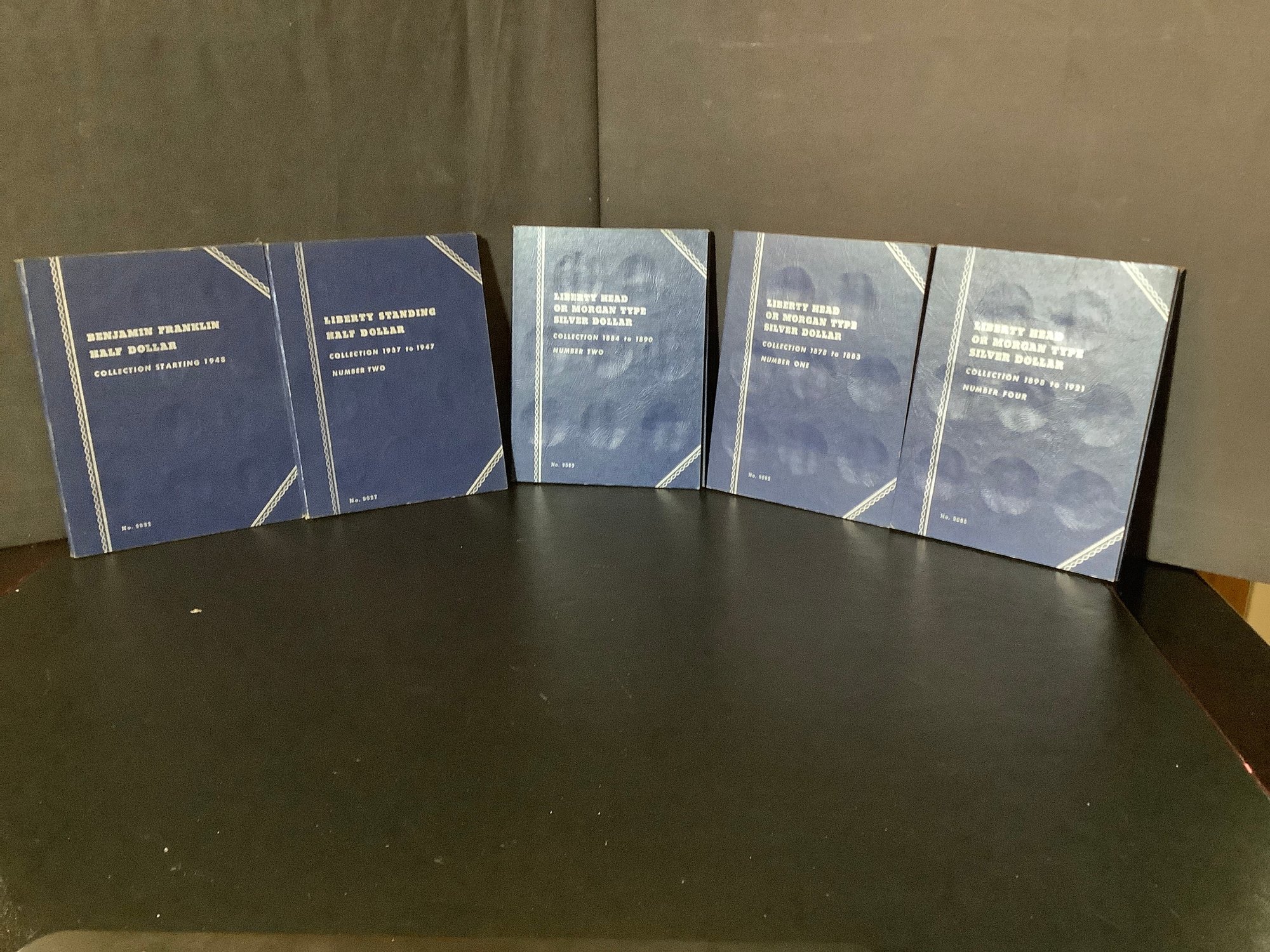 5 Coin collecting books / holders. Books for Franklin, Liberty Standing, Liberty Head and Morgan Silver Dollars. Photos are part of the description.
