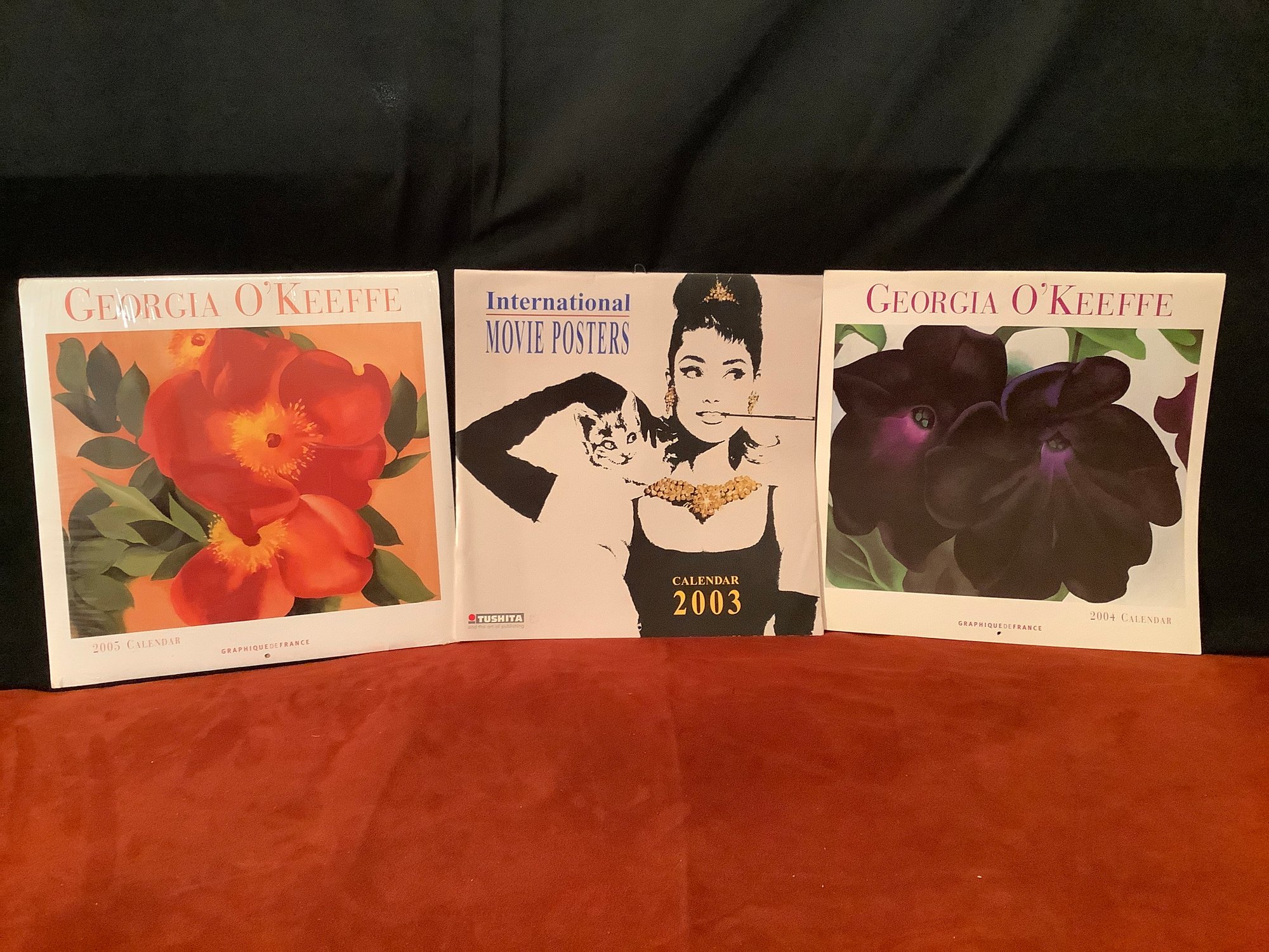 3 collectible Calendars. Includes 2003 International Movie Posters, 2004 Georgia O’Keeffe and. 2005 Georgia O’Keeffe. Preowned. Photos are part of the description.