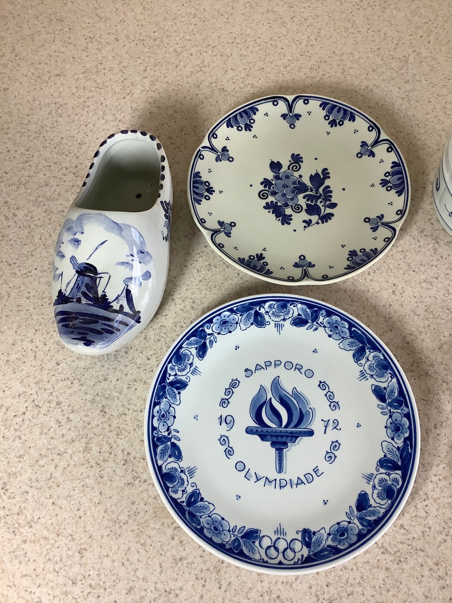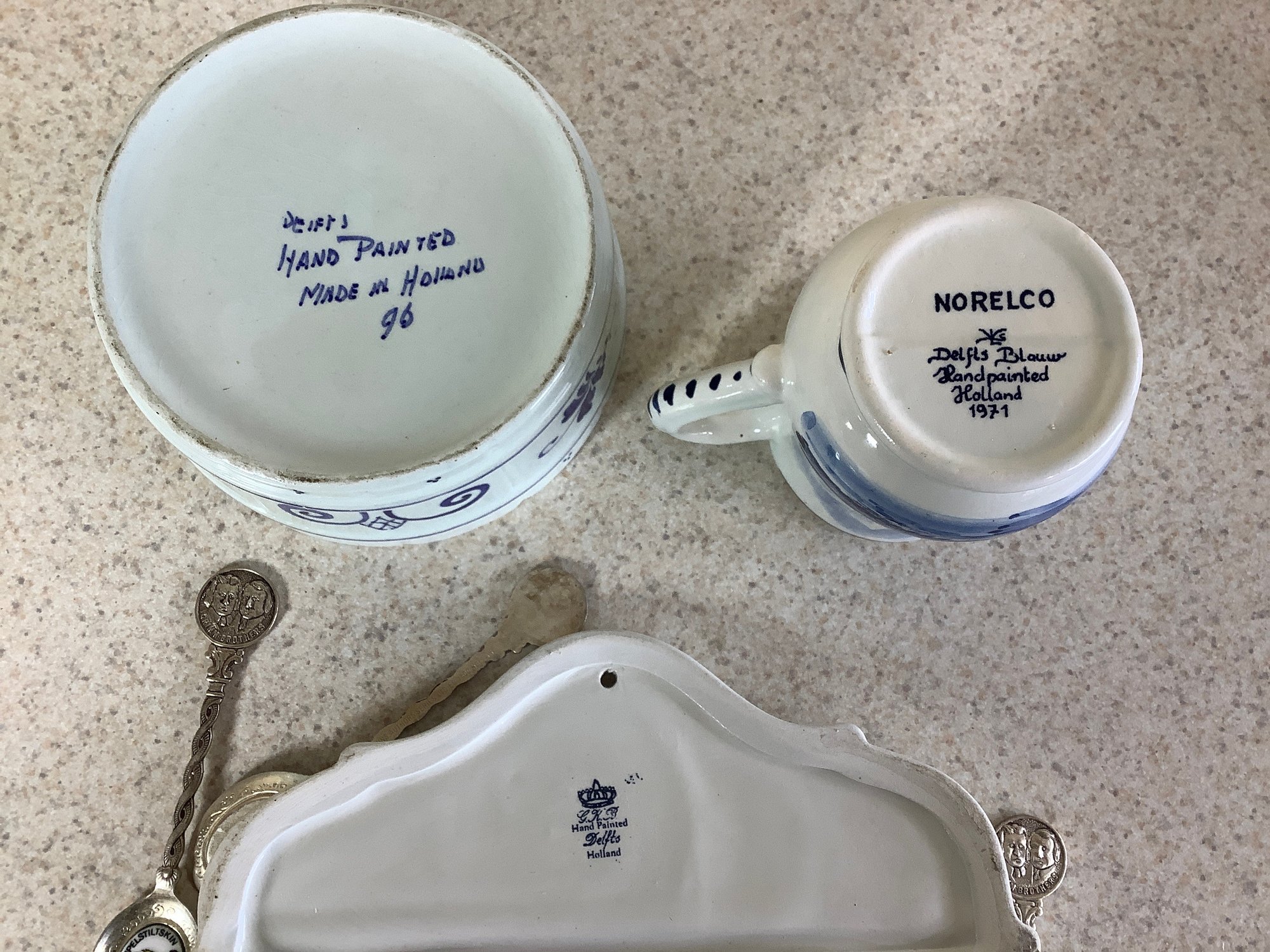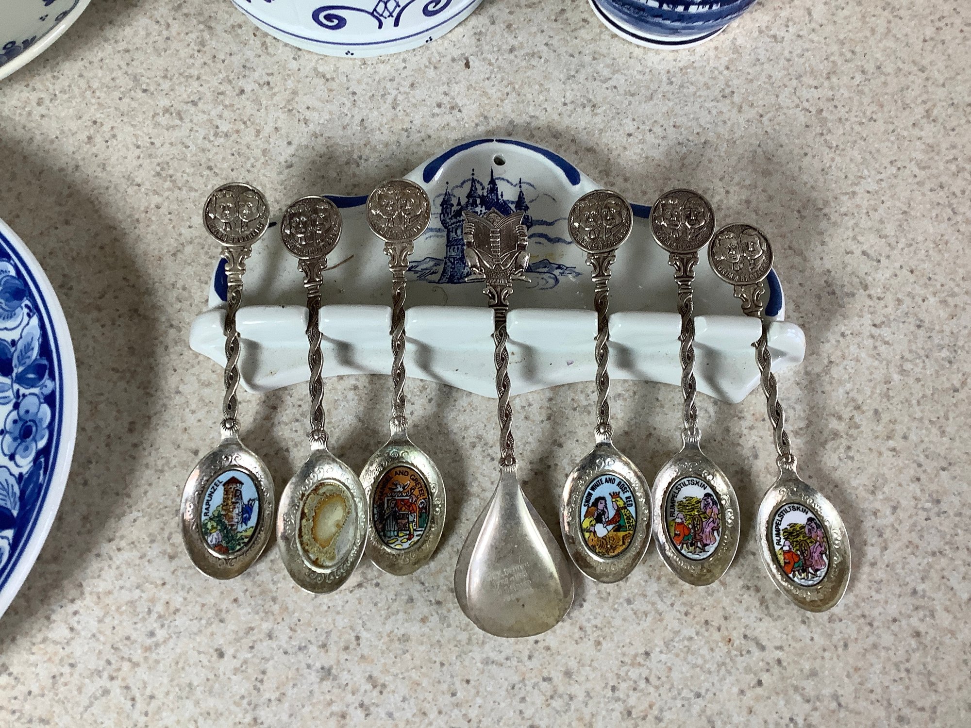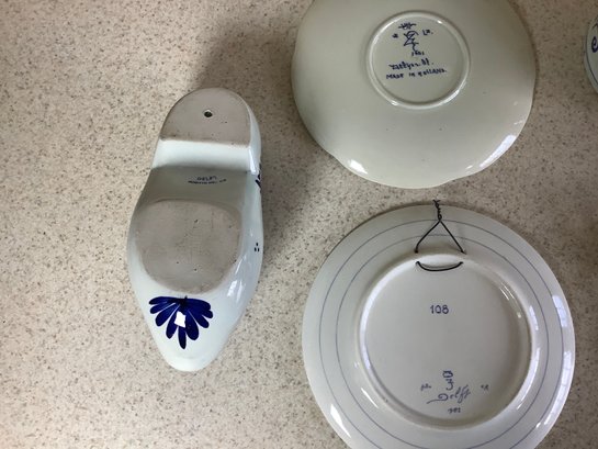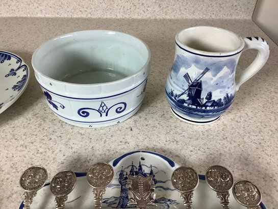 Delft collection. Includes Spoon rack with spoons, cup, 2 plates, bowl and shoe. Photos are part of the description . Preowned. NO SHIPPING.