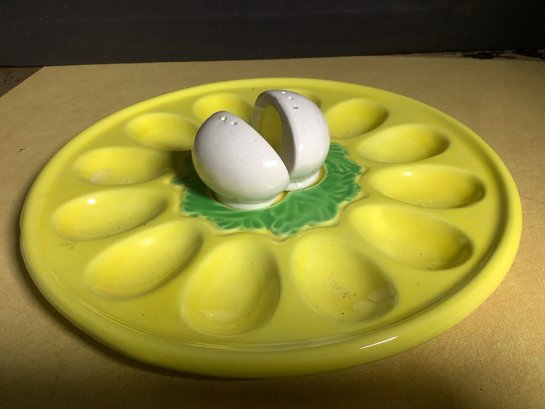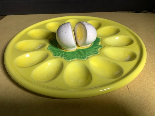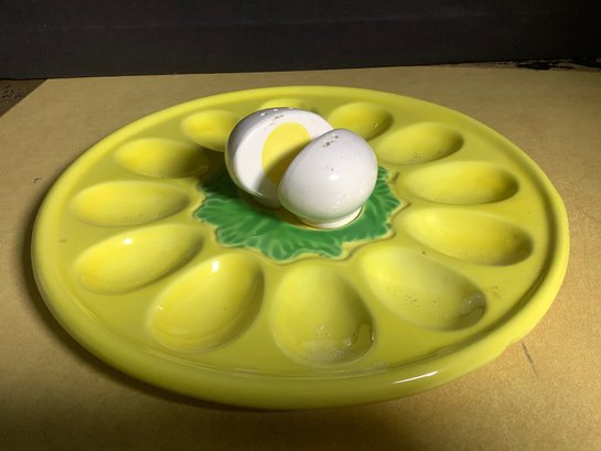 This is a bright yellow plate used to serve your hard boiled eggs.