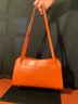 A luxurious leather pocketbook w/ classic shape and color that never goes out of style.