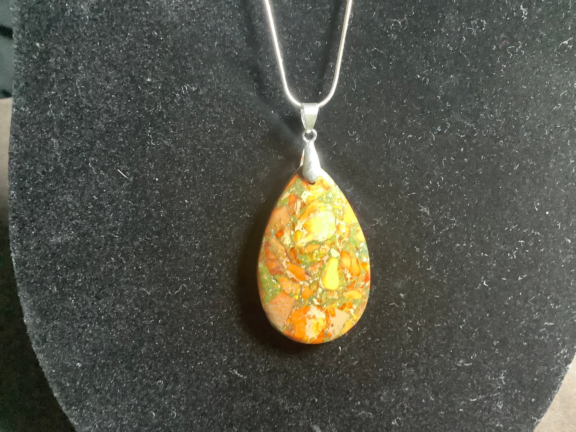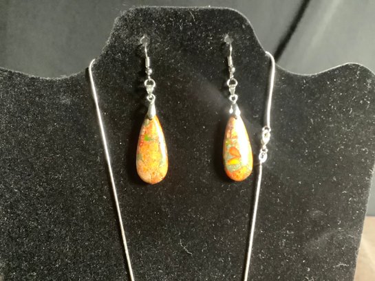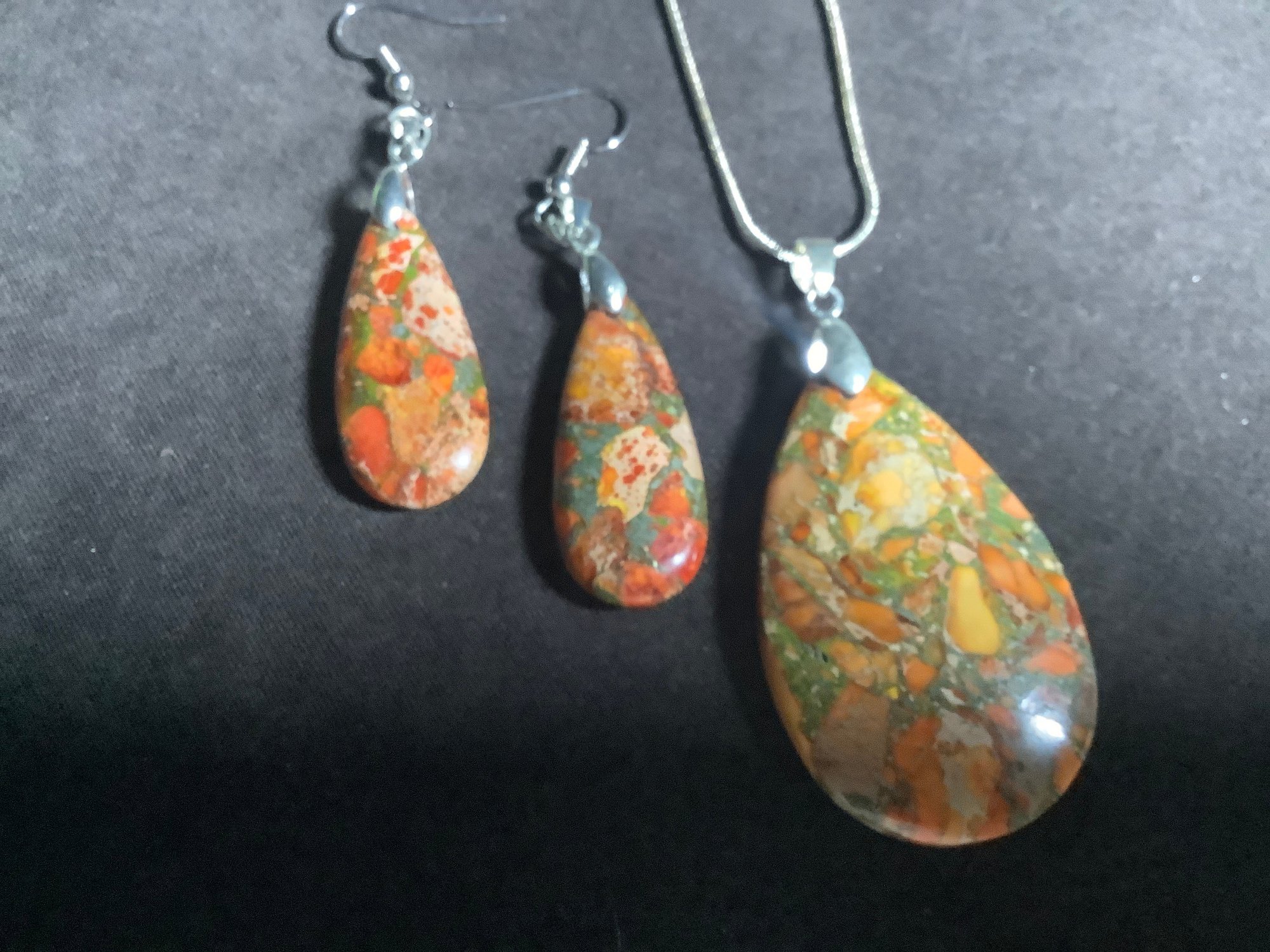 Comes with an attractive Jasper stone with matching drop style earrings.