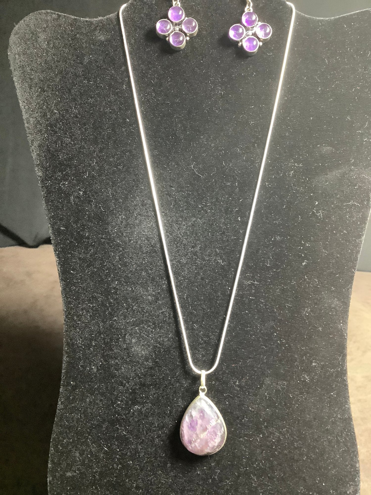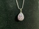 The stone charoite/amethyst pendant is approx. 1 1/4” long