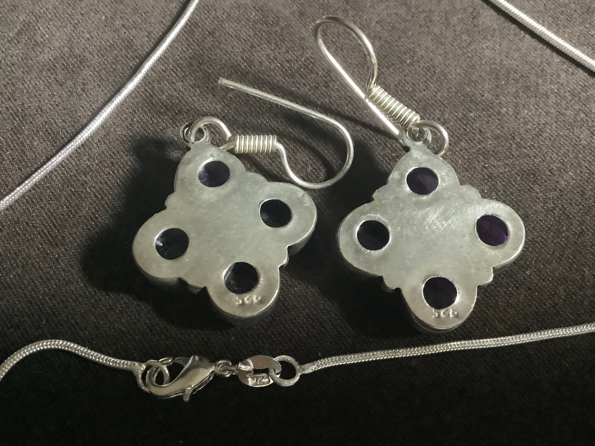 The chain and the earrings are marked 925.