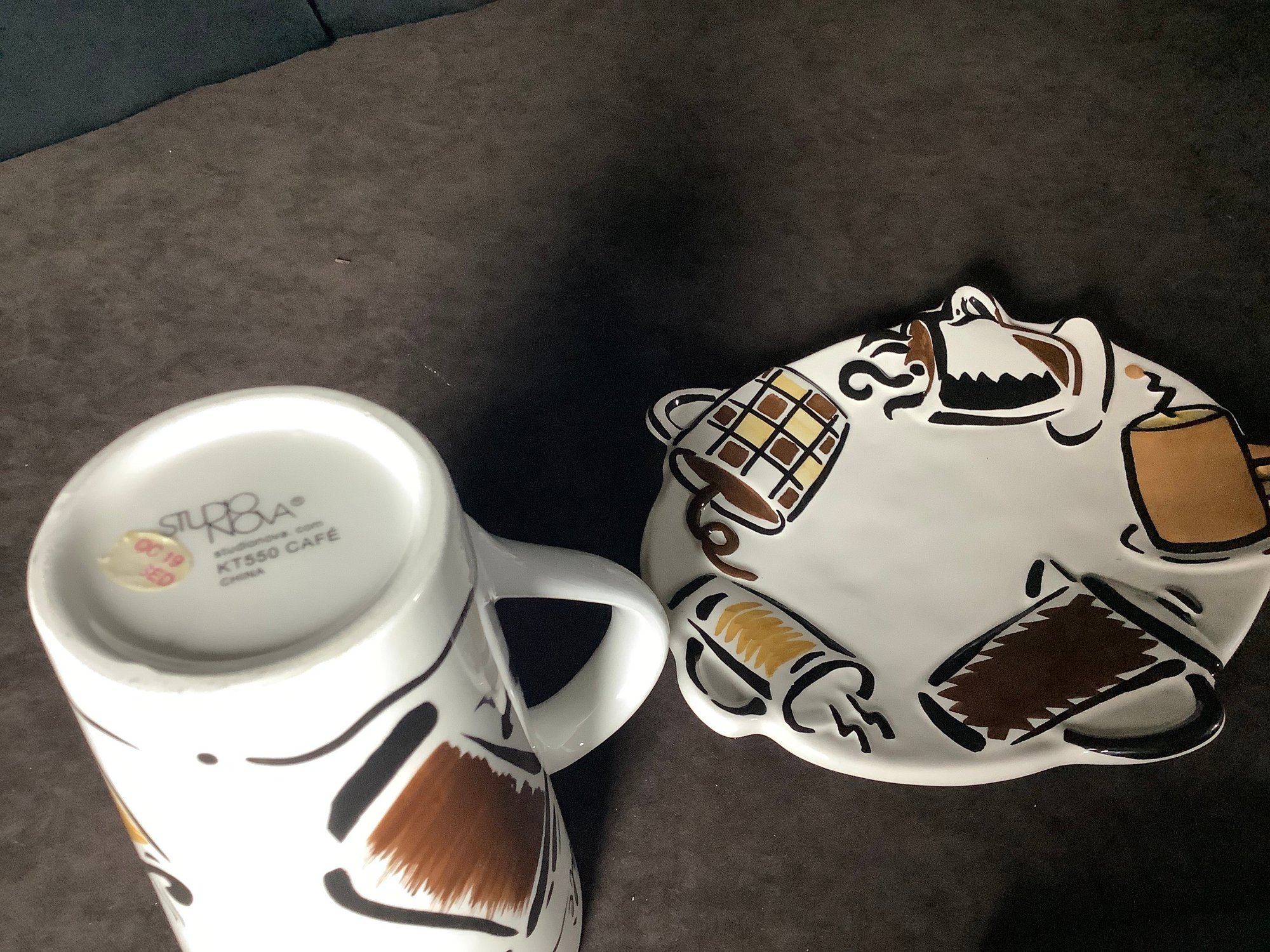 We have a Tall Coffee or Cafe’ Mug with a matching serving plate.