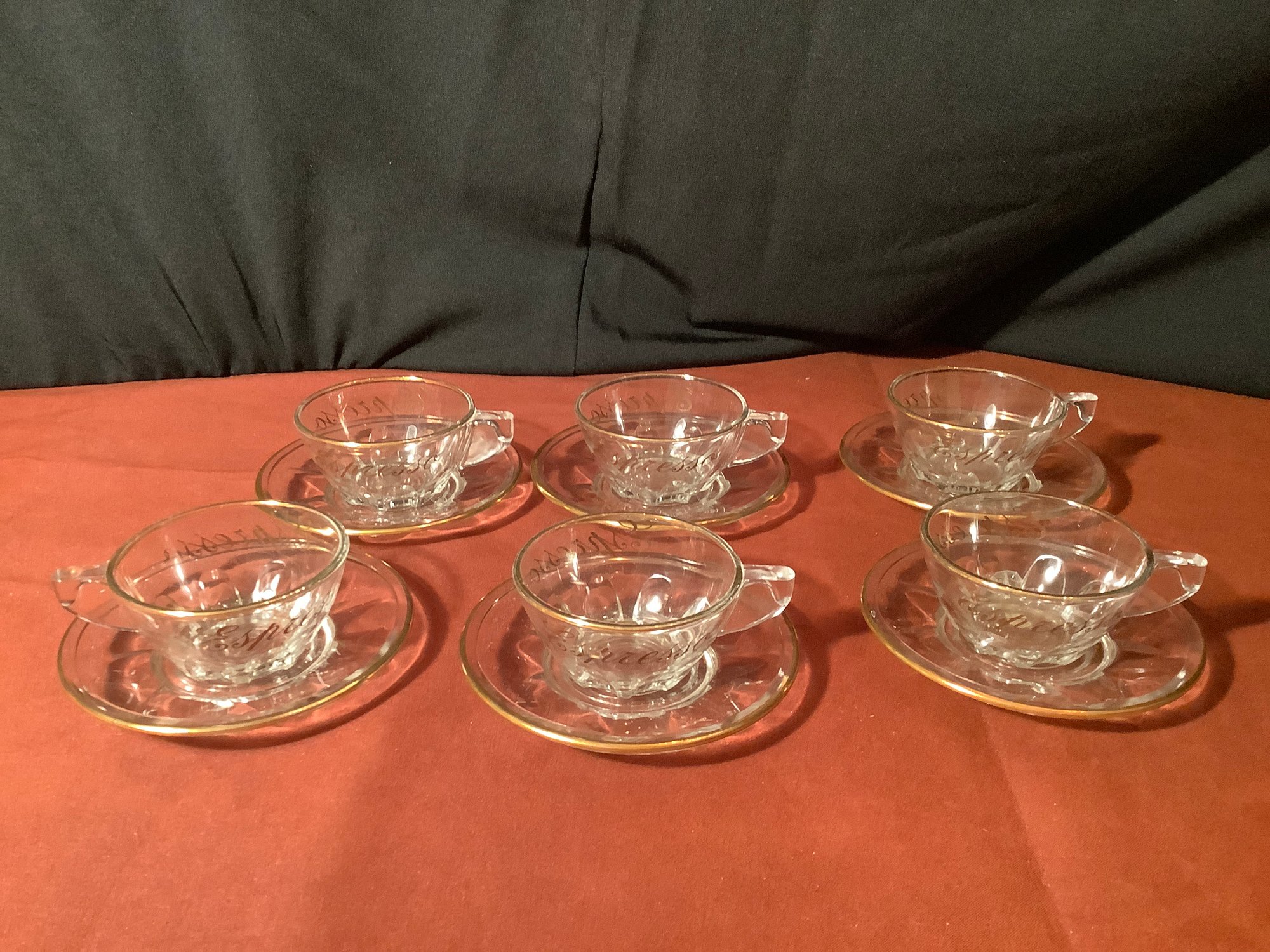 Cups are handled with gold rims- Each cup is signed Espresso in gold. Very attractive.