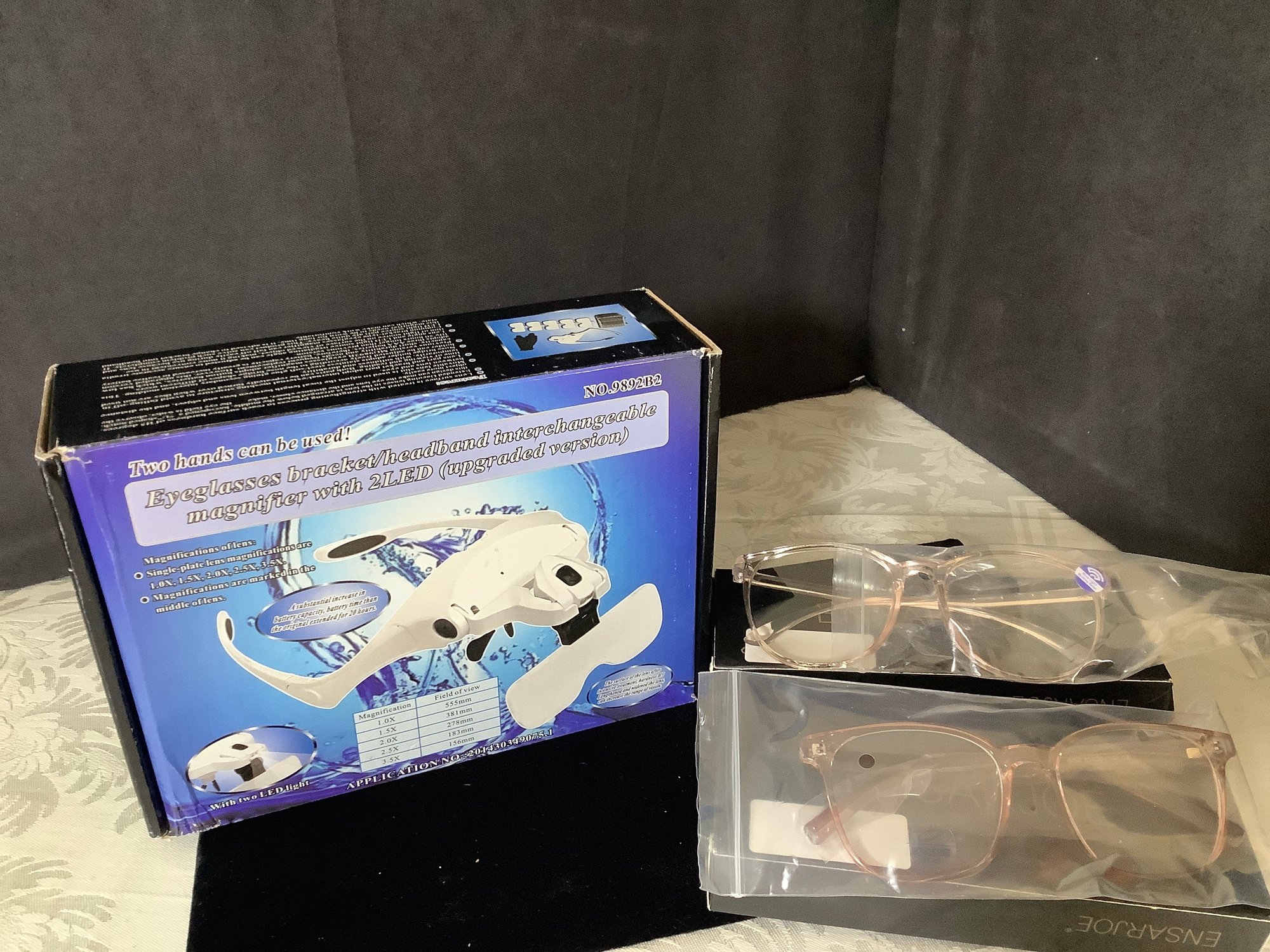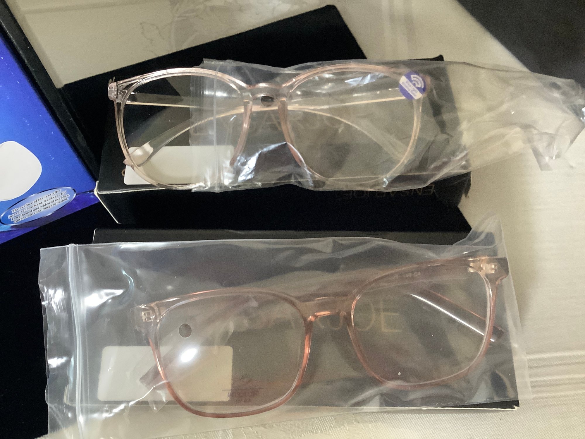 2 pair-Blue Blocker Eyeglasses. New in Boxes. They are blue light blocking reader glasses for computer gaming and working on electronics. Made by Ensarjoe.