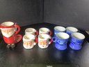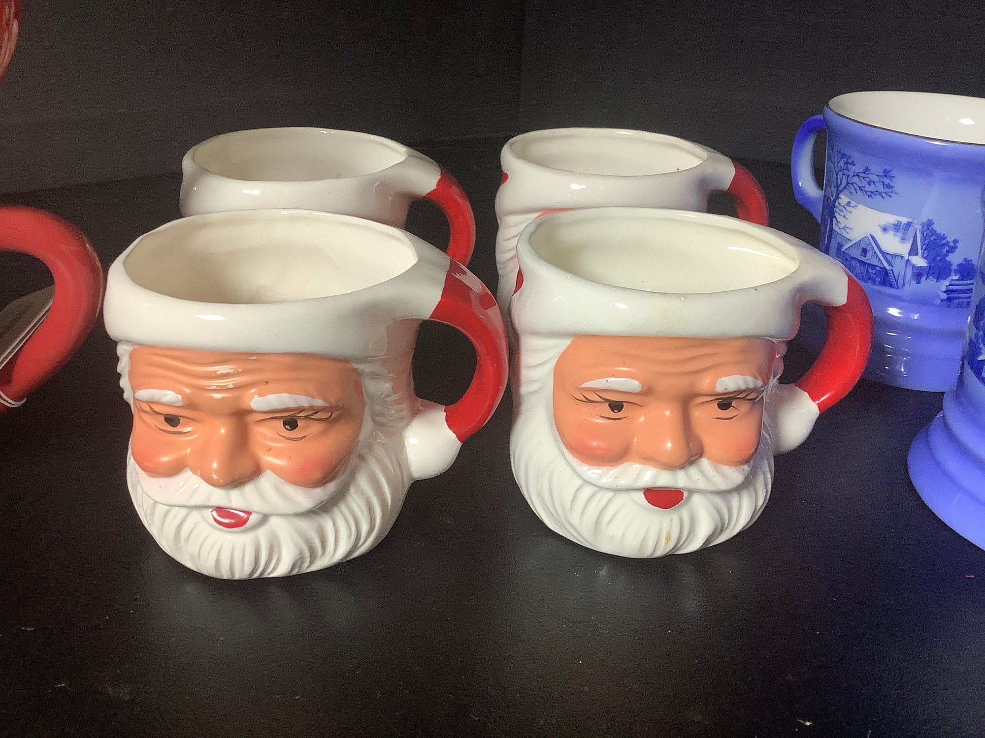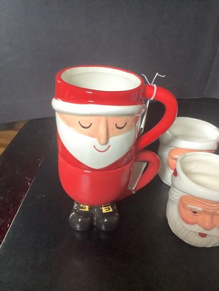 Holiday and winter mugs. Includes 4 Currier & Ives The Homestead IN Winter, 4 Santa mugs and Santa double mug. Photos are part of the description . Pre-owned. NO SHIPPING!!!