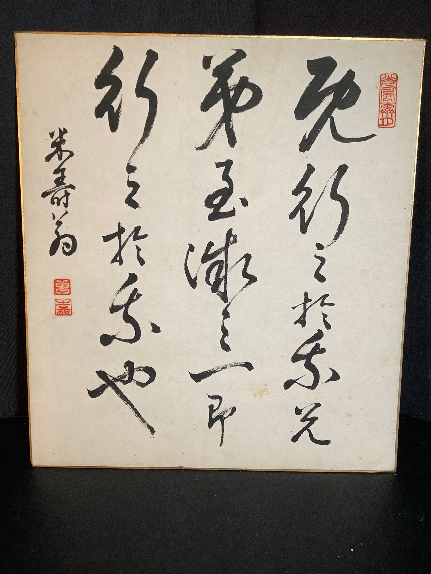 Vintage Japanese art board. Hand painted on Shikishi paper. Calligraphy. Preowned. Photos are part of the description.Size is approximately 10.5” x 9.5”.