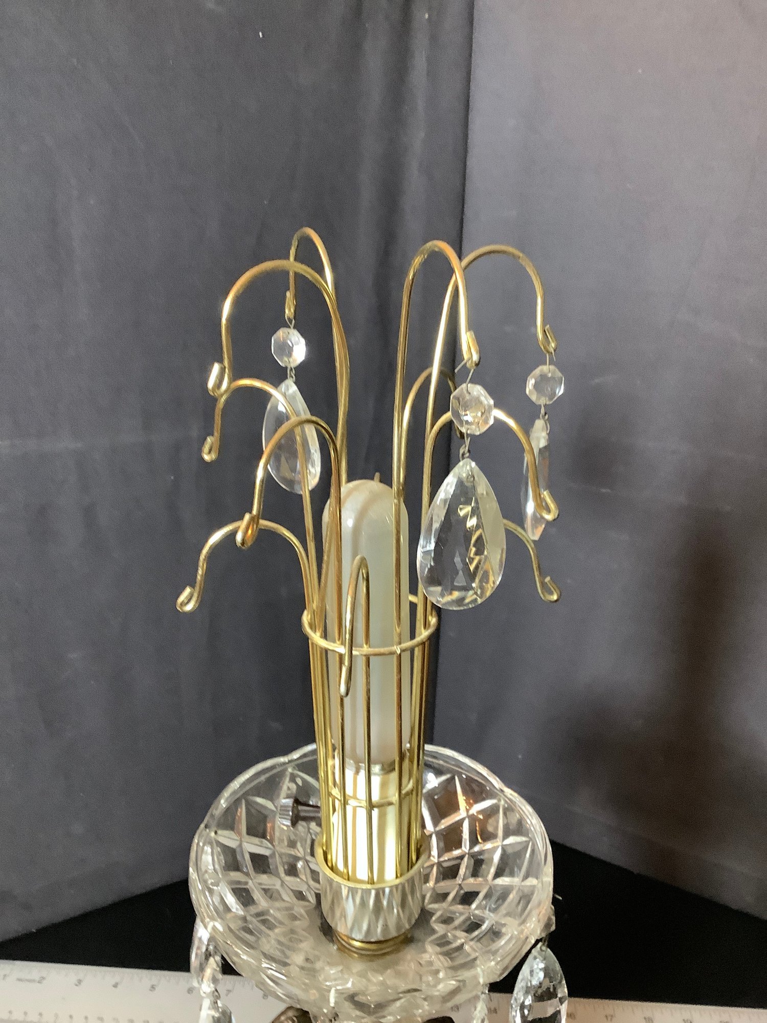 Lamp restoration. This lamp was started in a restoration. Needs more crystals or your choice of what to hang . Photos are part of the description. Preowned. NO SHIPPING.