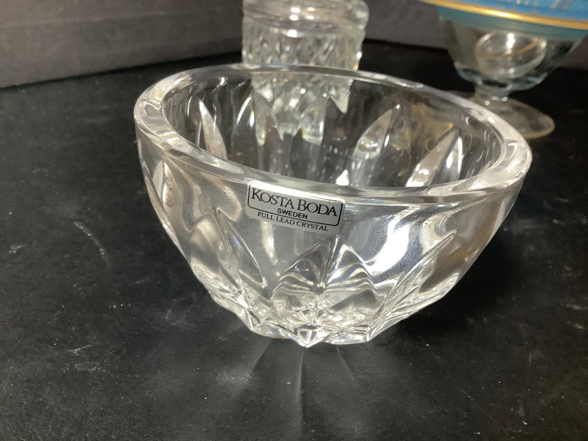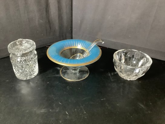 Glassware bowls and covered Sugar dish. Includes Kosta Boda 4-3/8” diameter bowl. Photos are part of the description. Proeowned. NO SHIPPING!!.