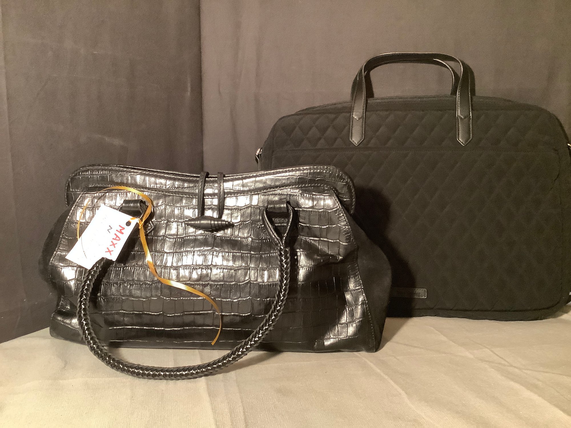 2.) Vera Bradly Laptop. This nice lightweight bag offers not only carry handles but it also comes with a carry strap.. Material is cross hatch microfiber. Zips closed. color: black.