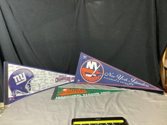 Local sport teams pendants. Includes NY Giants, New York Islanders and Long Island Ducks. Photos are part of the description. Preowned. NO SHIPPING!