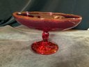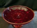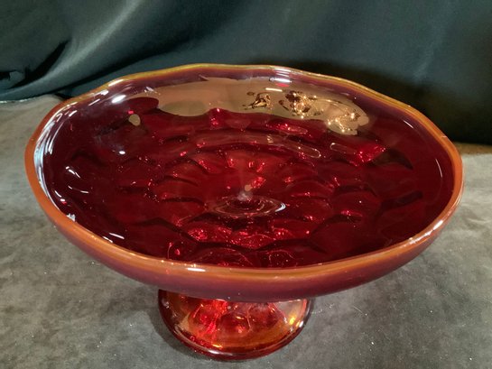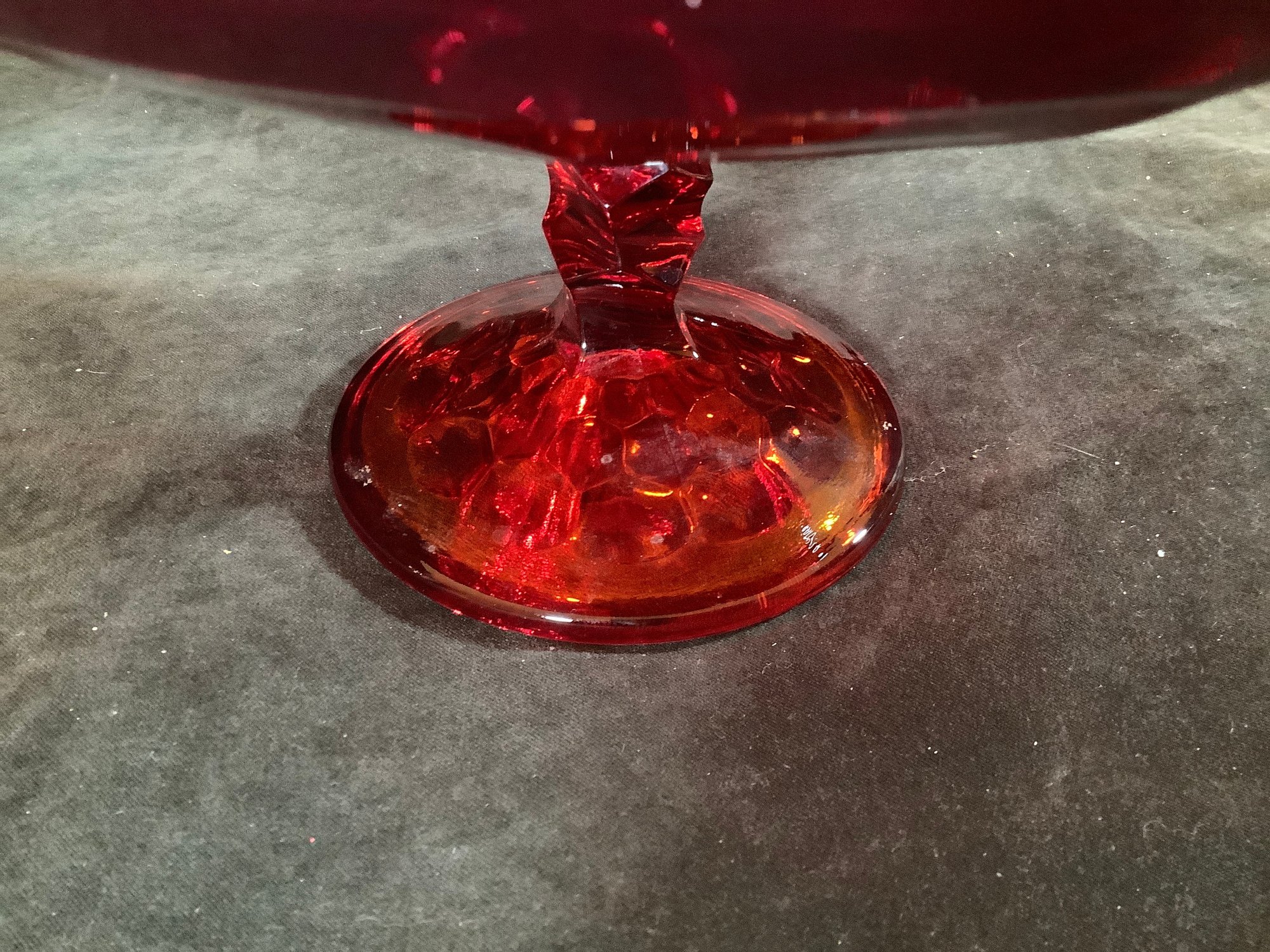 This is a pedestal style compote with a nice wide bowl to fill with nuts, candy or any hor d’oeuvres or dessert your please. The compote has a bright shine reflecting the light in the room.