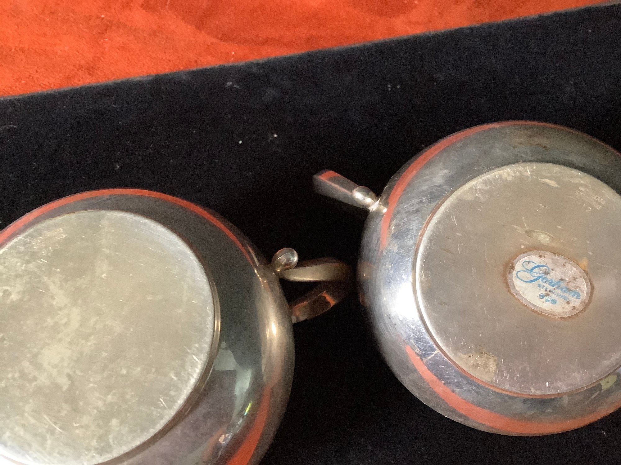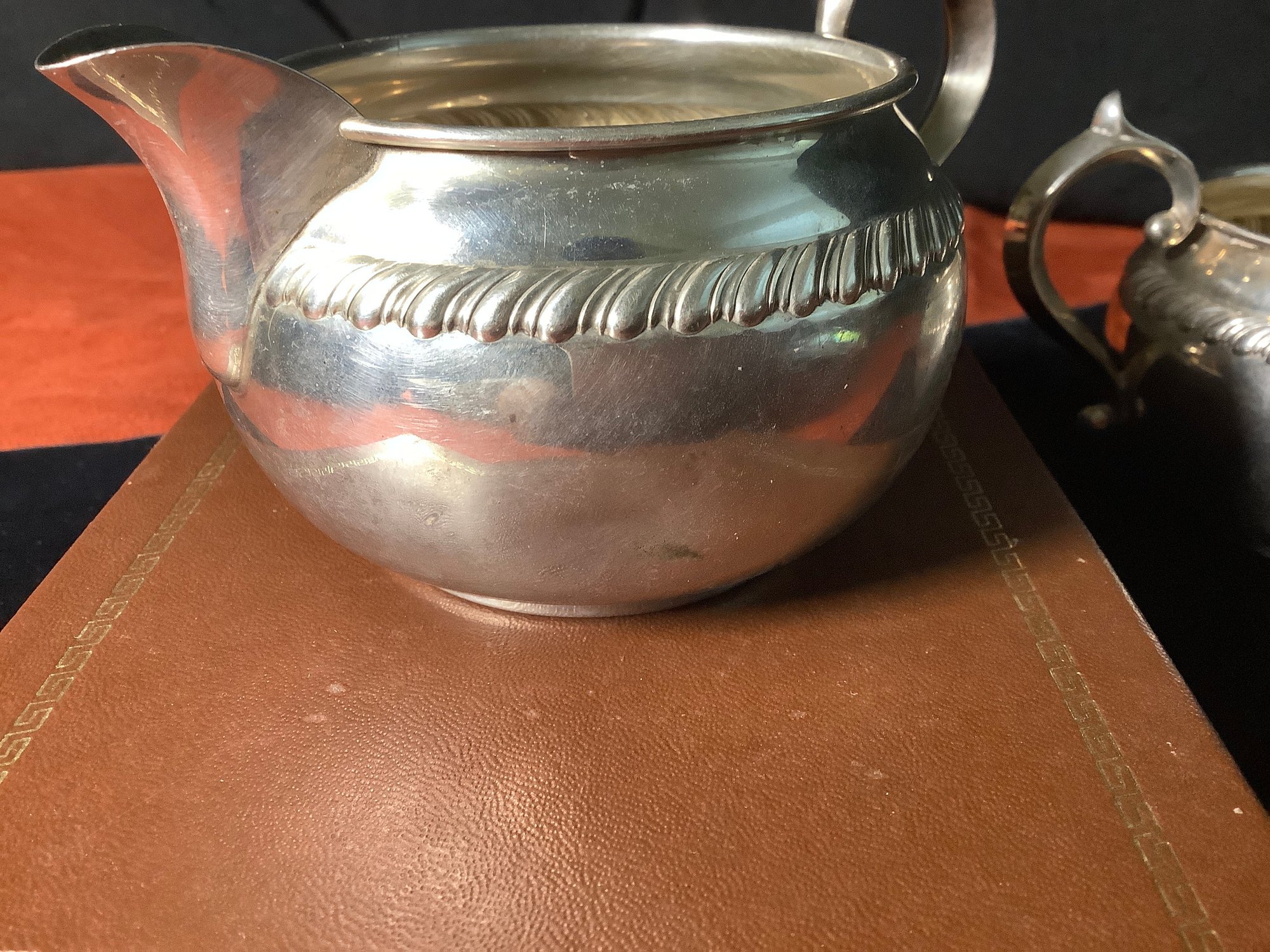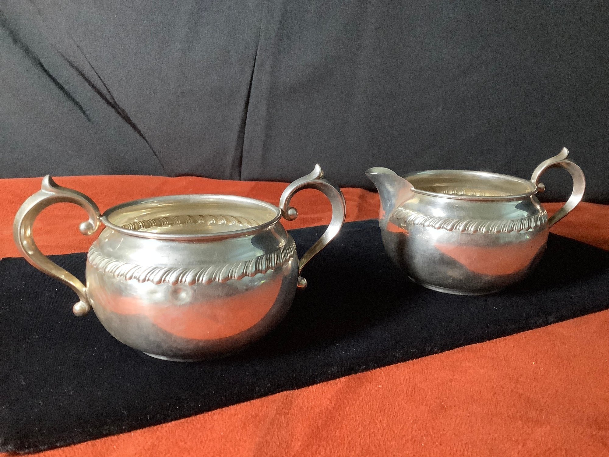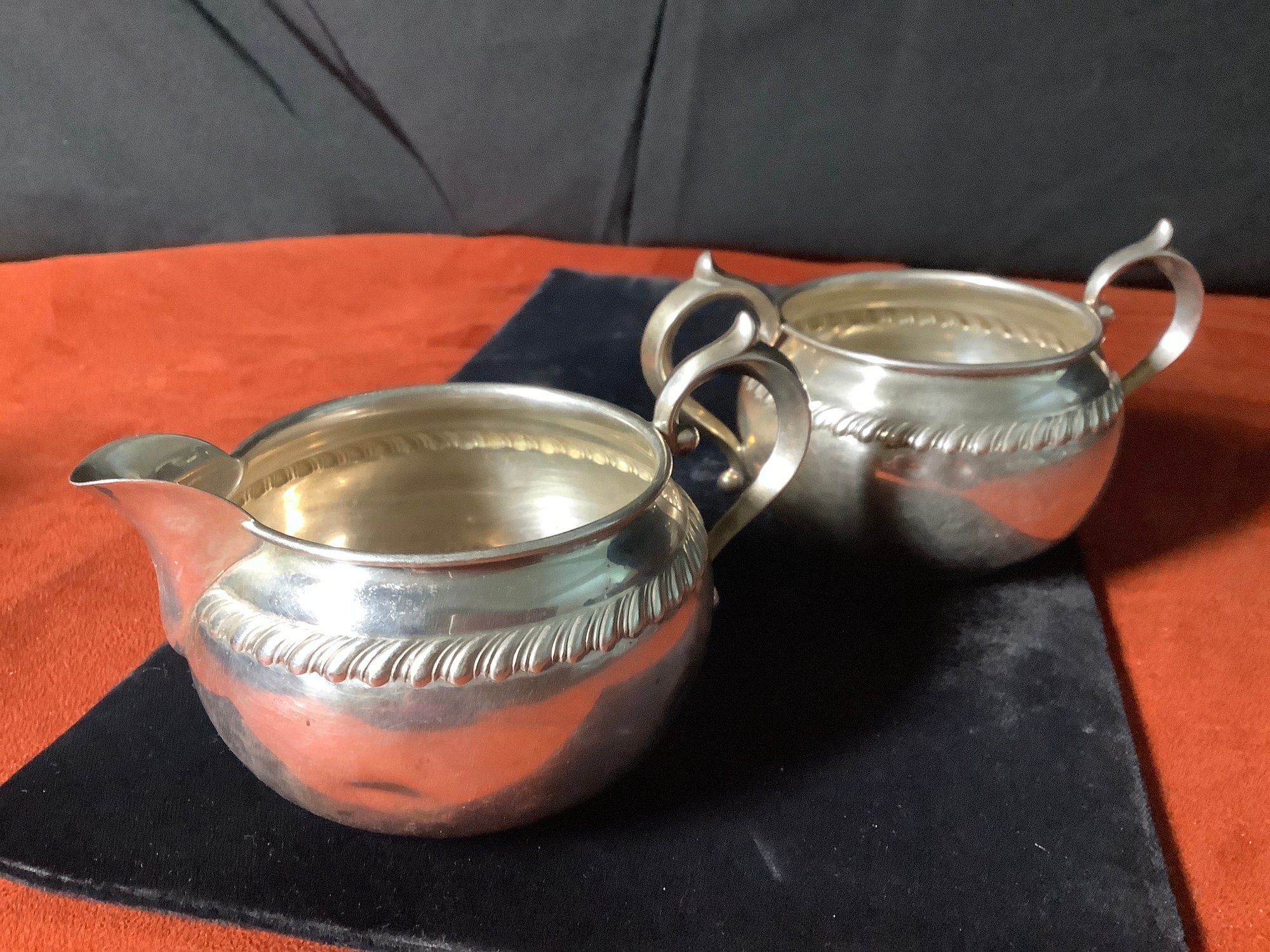 We have a matching pair, a double handled sugar bowl and matching creamer. They offer a rope style design all the way around.