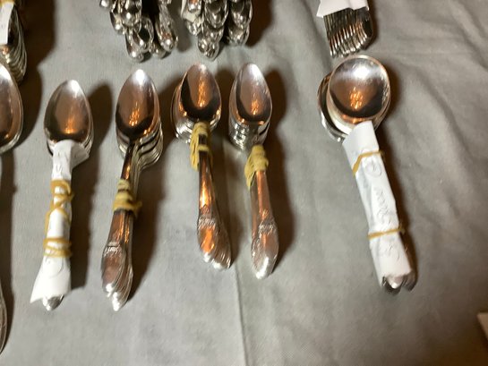 17 pcs dinner forks, 20 dinner knives, 36 tea spoons, 18 salad forks, 2 sugar spoon, 20 soup spoons, 2 butter knives 2 large spoons and on children’s set .