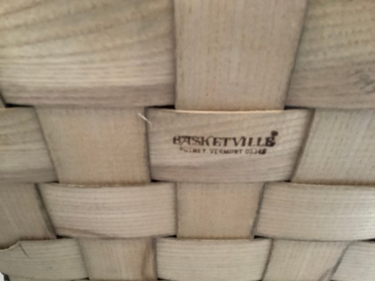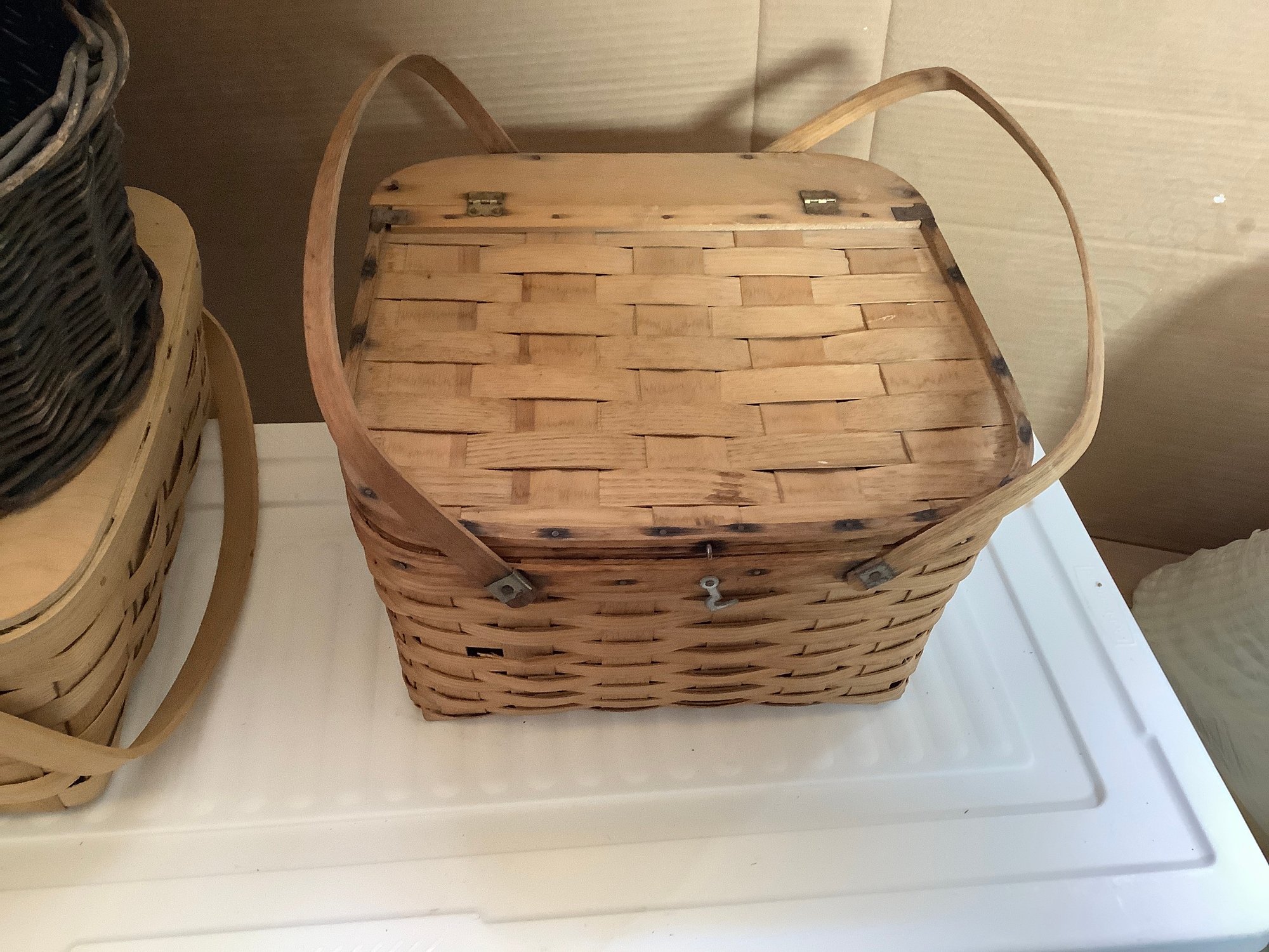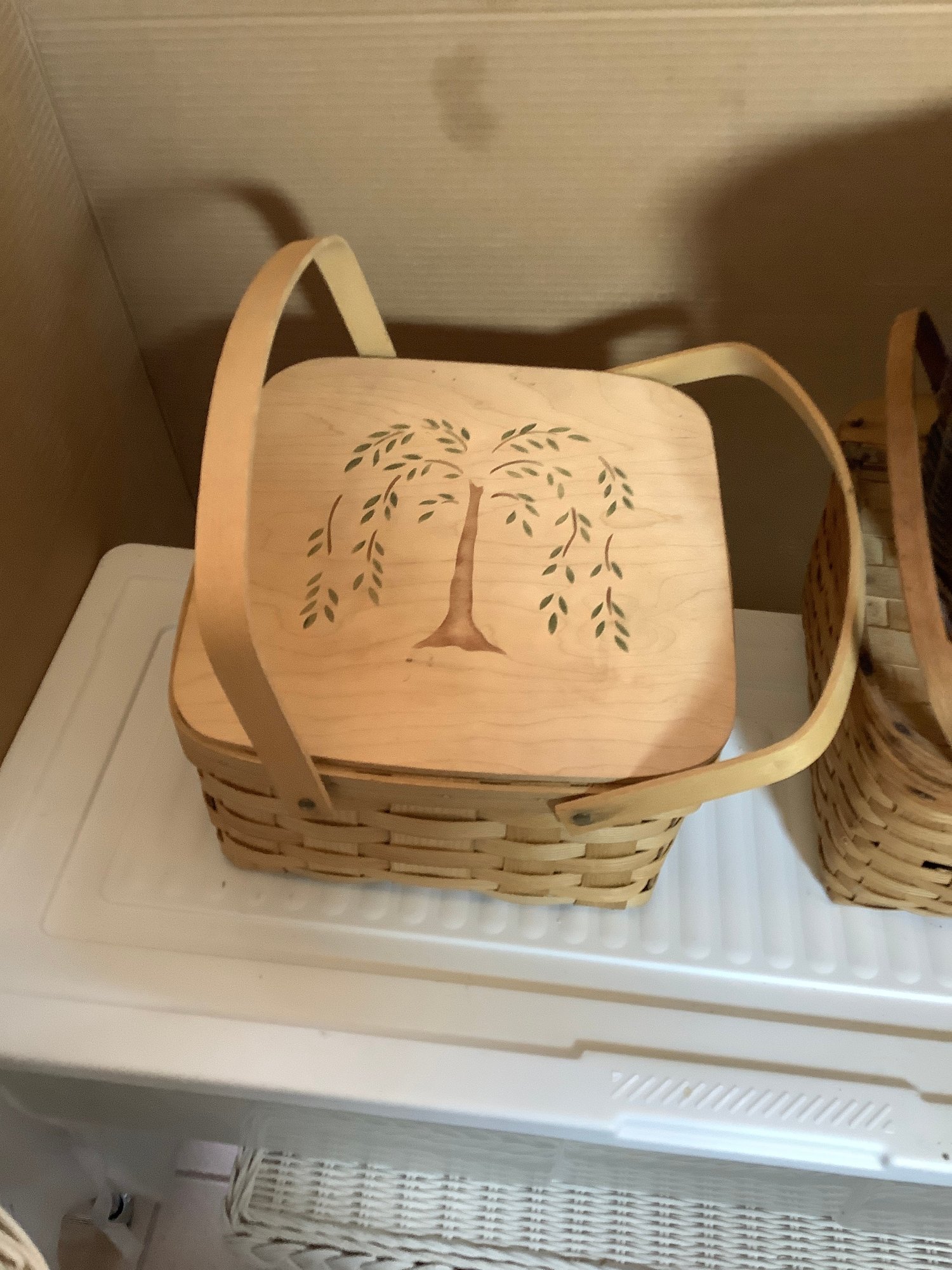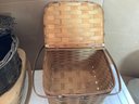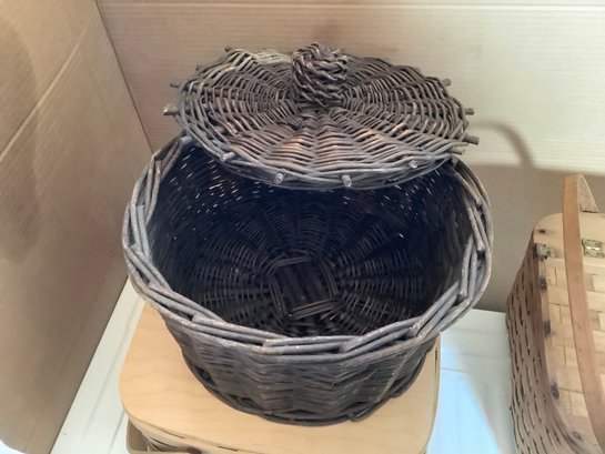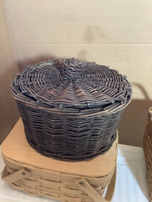 Group of three covered baskets. Photos are part of the description. Preowned. NO SHIPPING.