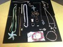 Large group of costume jewelry. Includes bracelets, rings and necklaces. Photos are part of the description. Preowned.