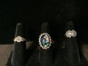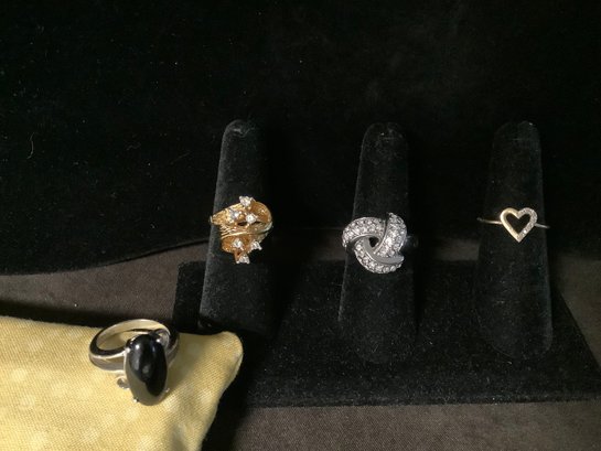 Assorted styles and sizes including a heart ring, cluster, a knot and cabochon style.