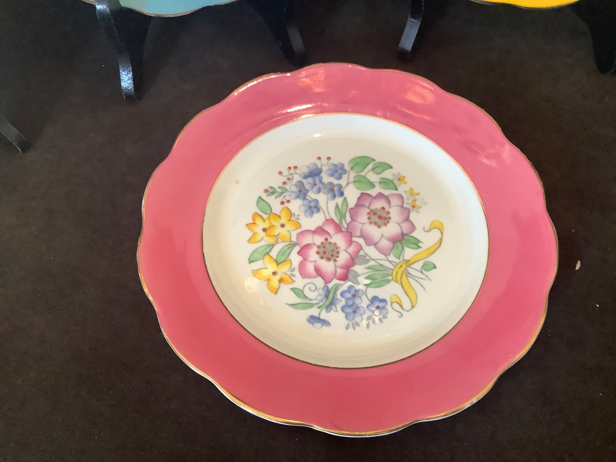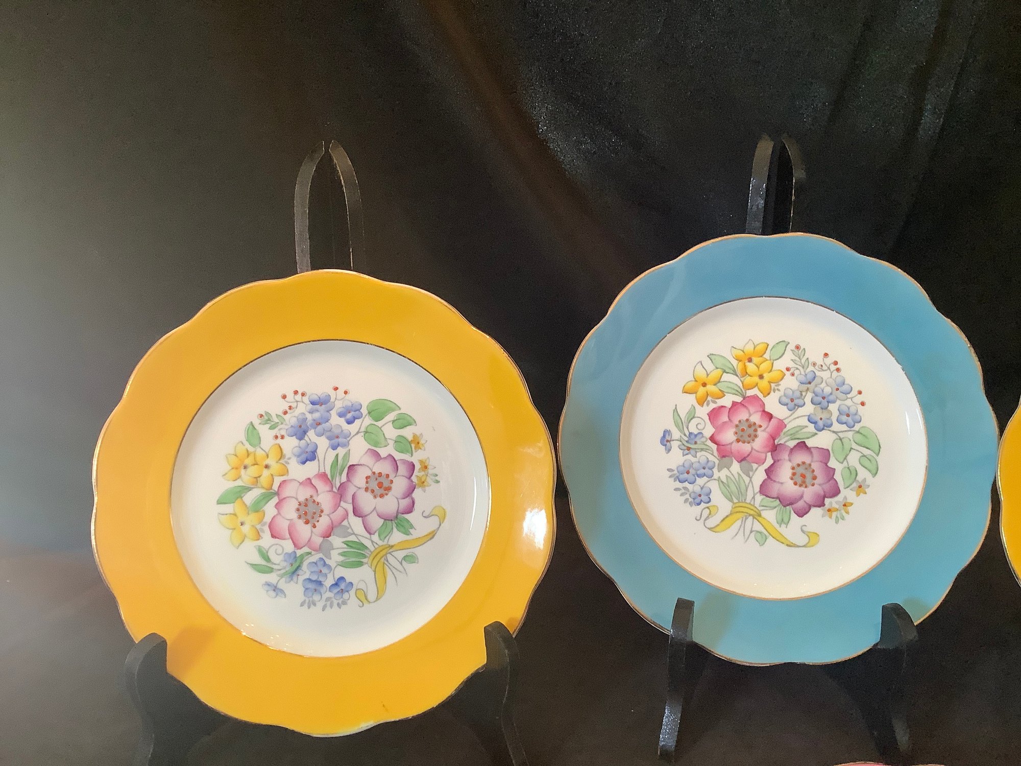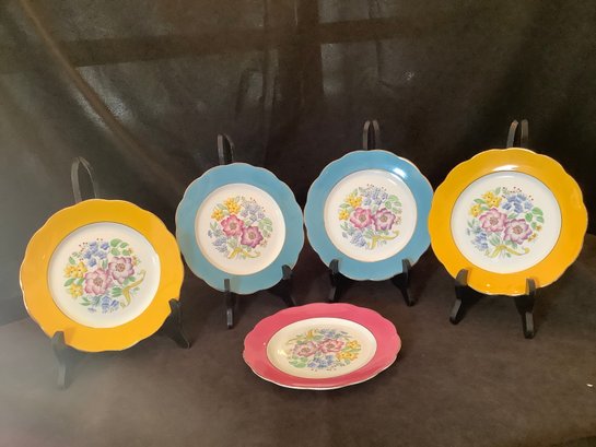 This is a group of colorful dessert or luncheon dishes.