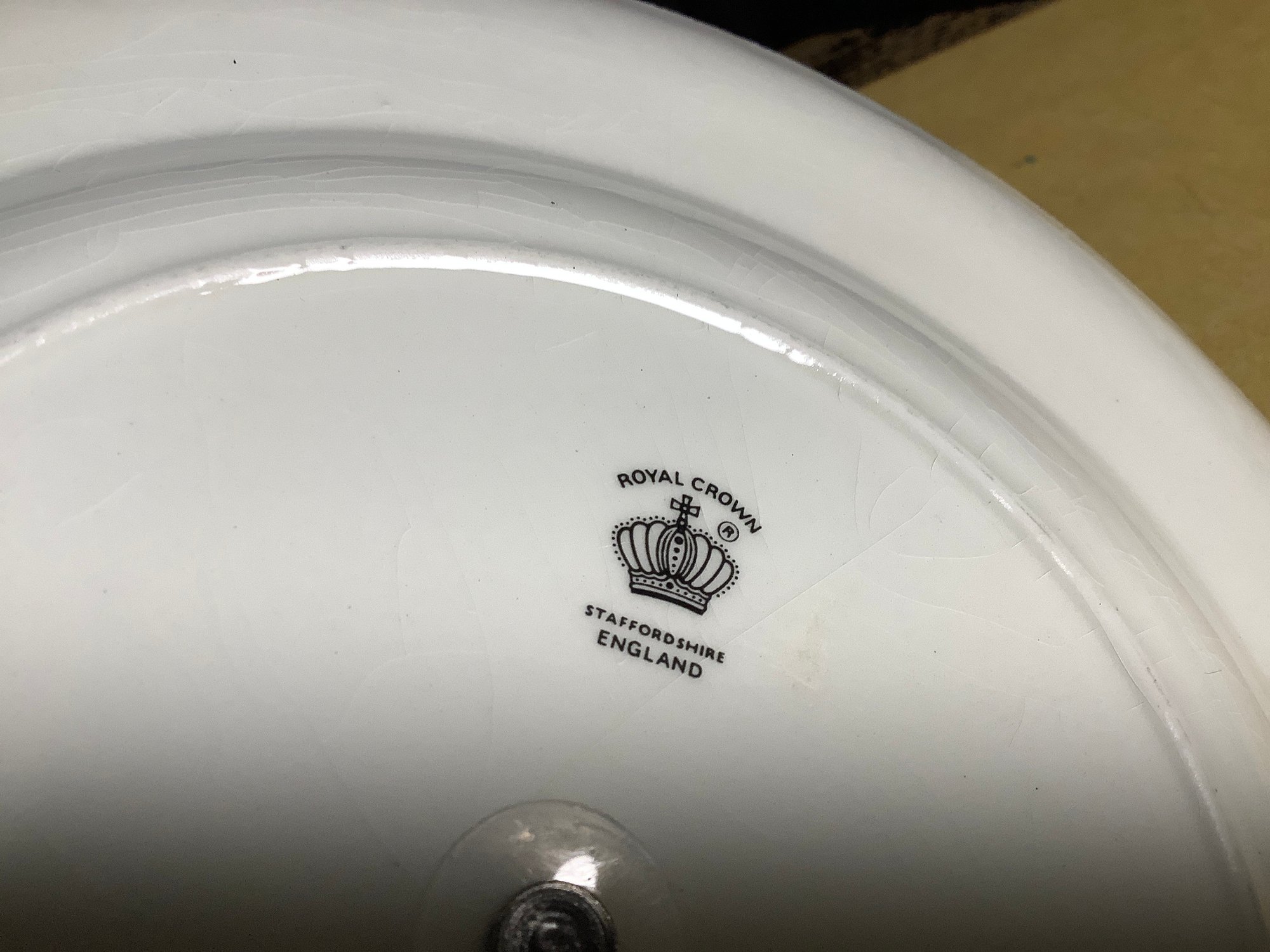 This is a vintage piece. made by Royal Crown is marked made in Staffordshire, England.