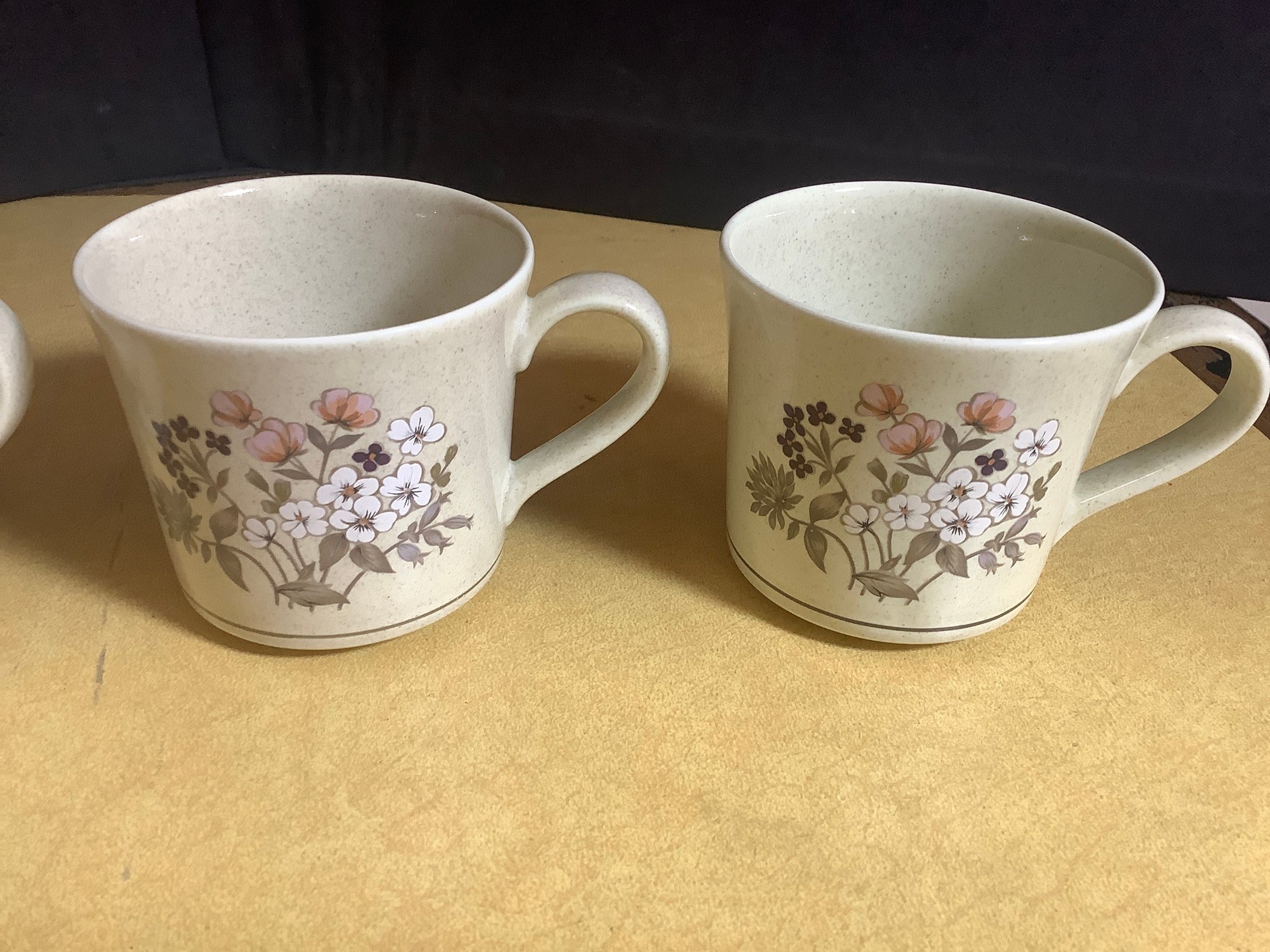 Vintage Royal Doulton Lambethware cups. Quantity 4. Pattern Bredon Hill. Photos are part of the description. Preowned.