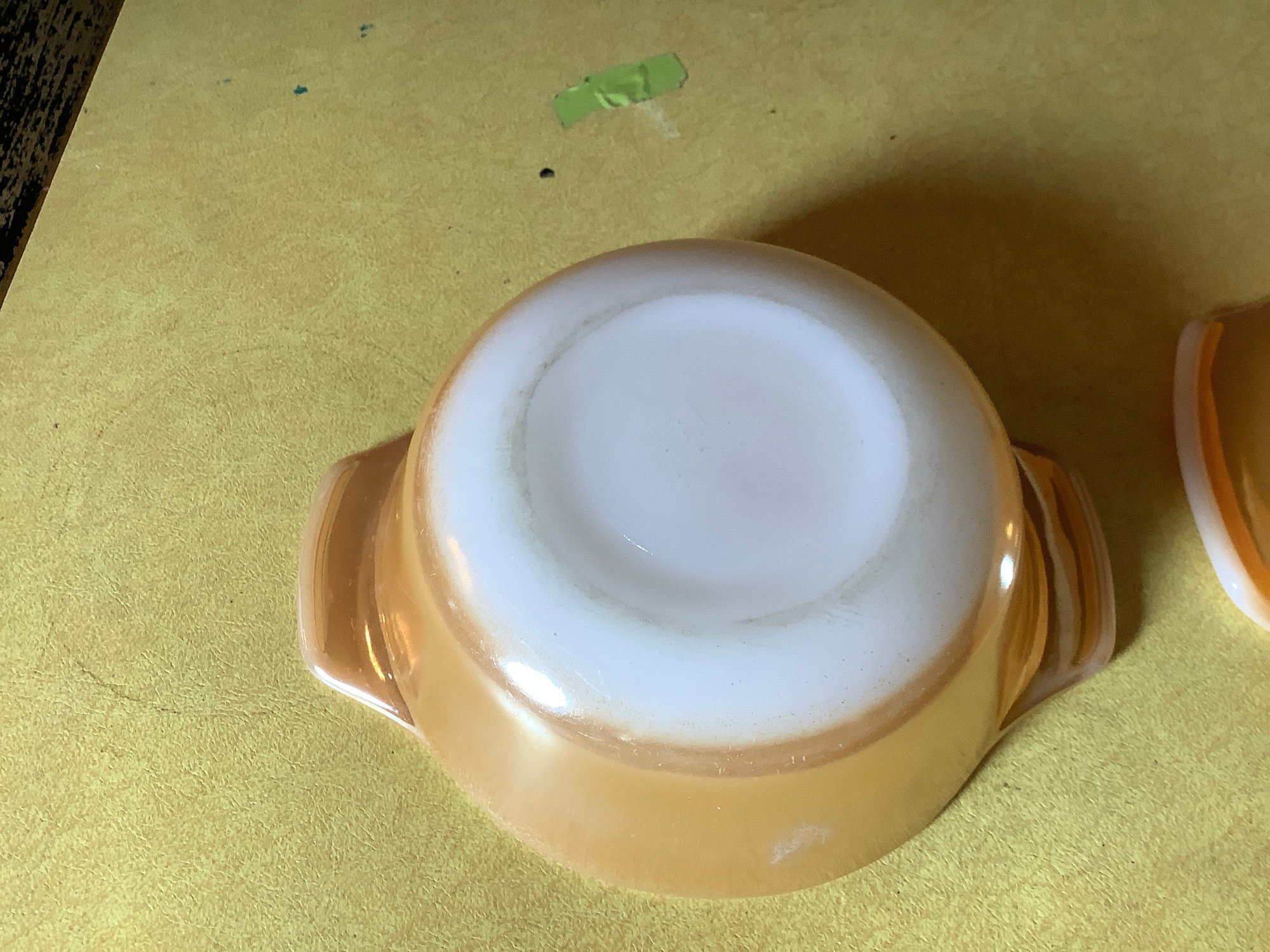 Set of 2 vintage Fire King Peach luster Baking dishes. Size 1-1/2 quart and 12oz. Photos are part of the description. Preowned. NO SHIPPING.