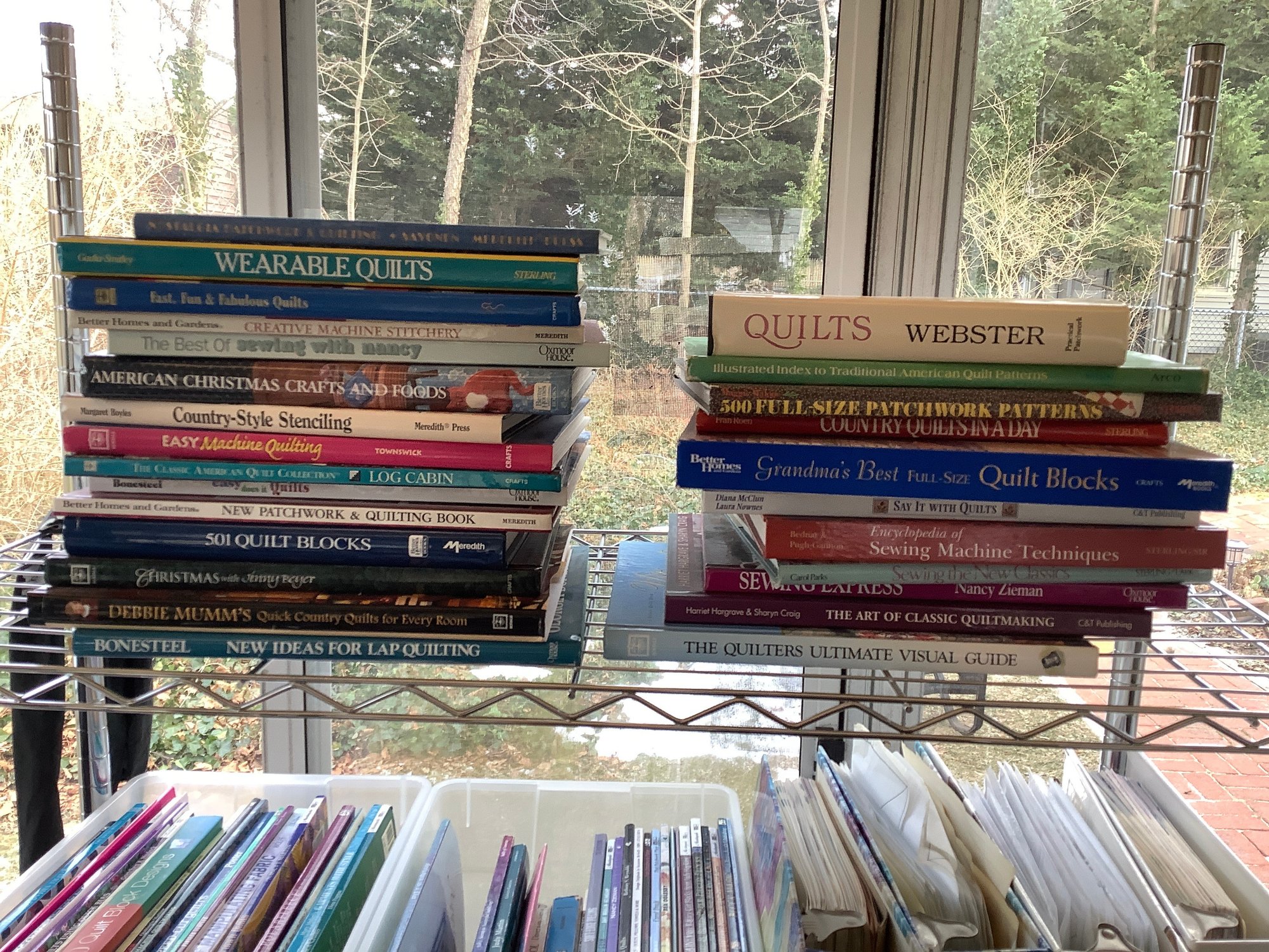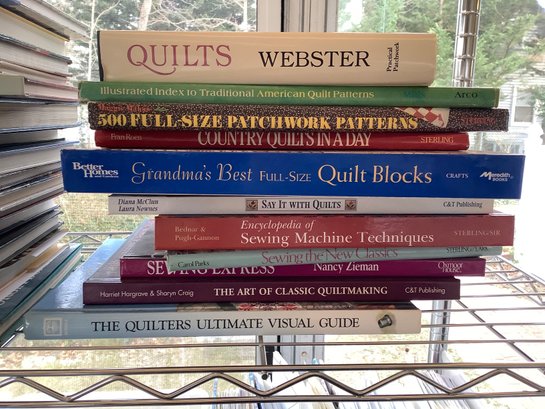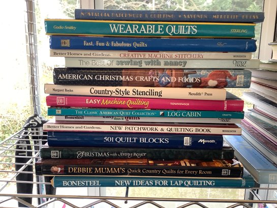 Shelf of 25 quilting books. Photos are part of the description. Preowned. NO SHIPPING.Bring packing materials.